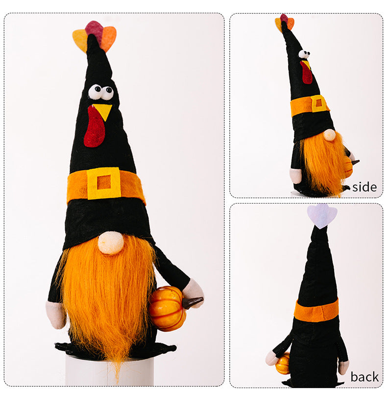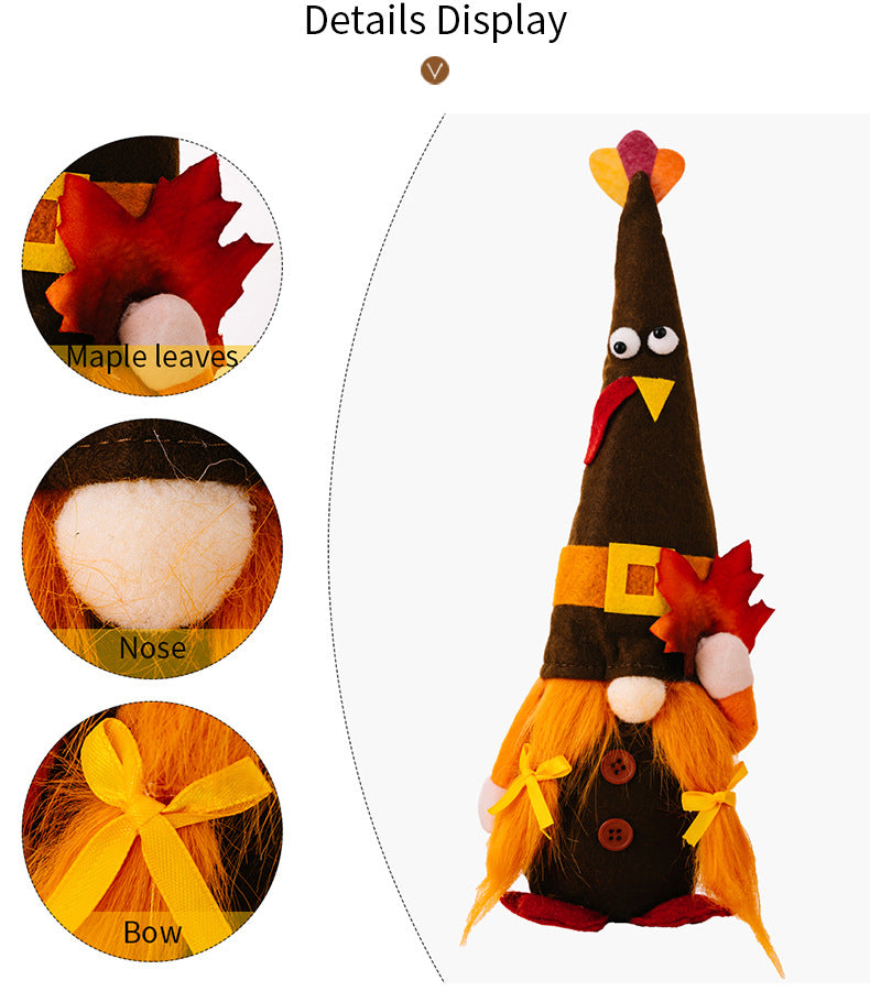 Thanksgiving turkey gnomes holding pumpkin /maple leaf