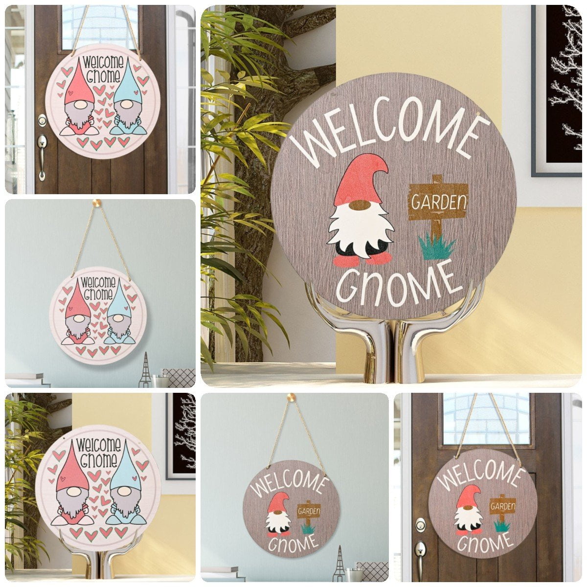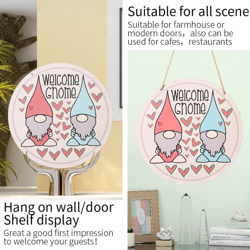🌼Unique design- Sign Front Porch Door Decor Engraved with the -Welcome Gnome- logo. There is cute gnome dolls on the logo,makes this front door logo look cute and great!