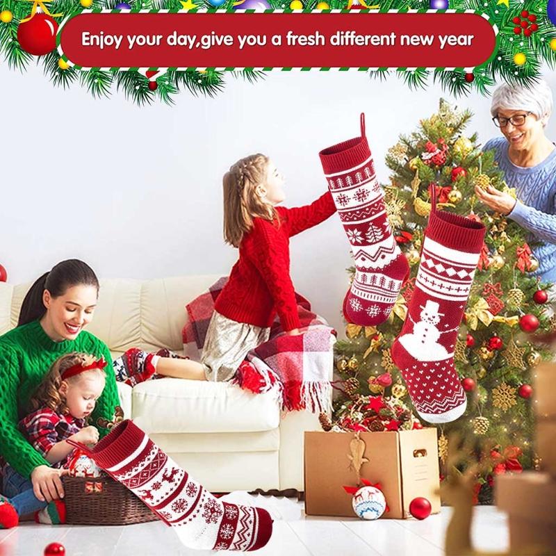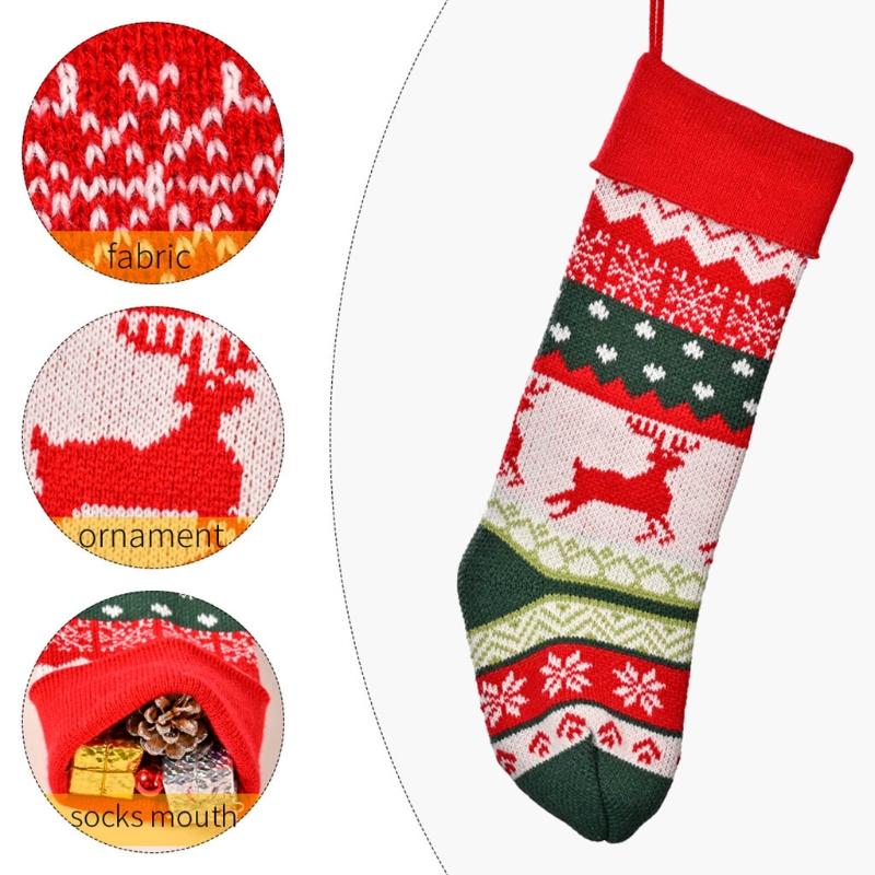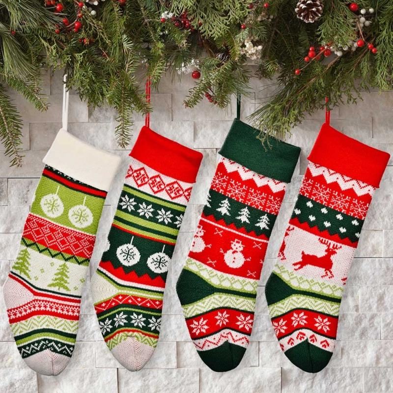 4 Pcs 18.11in Large Christmas Socks With Knitted Candy Bag Christmas Decor