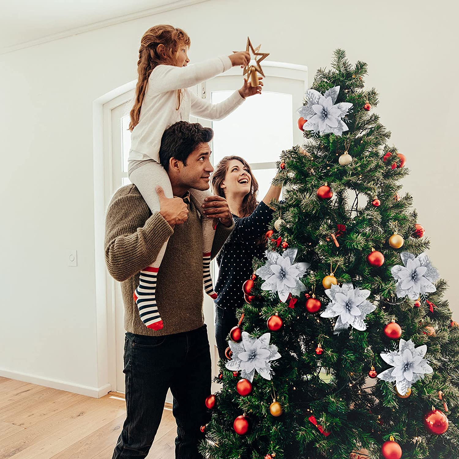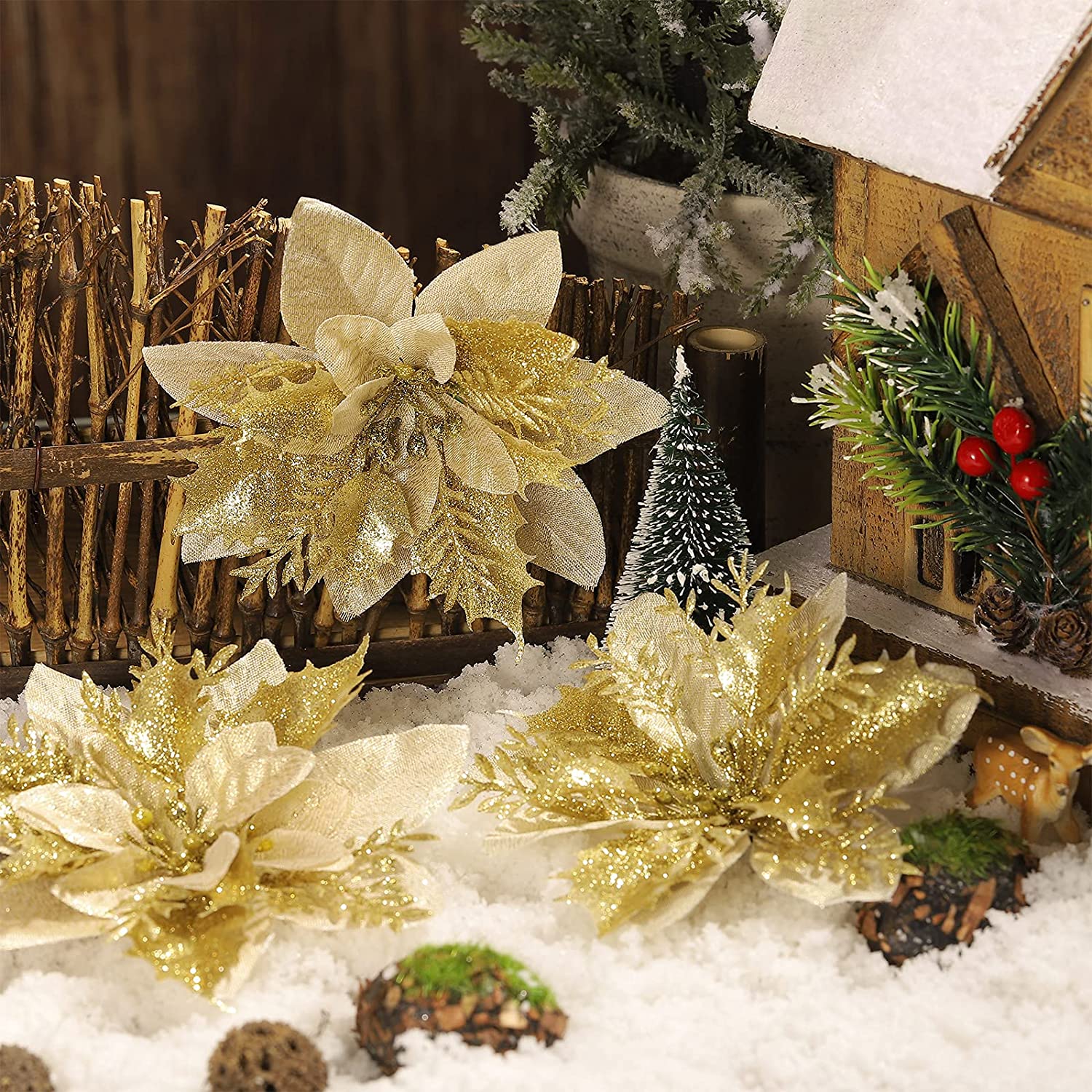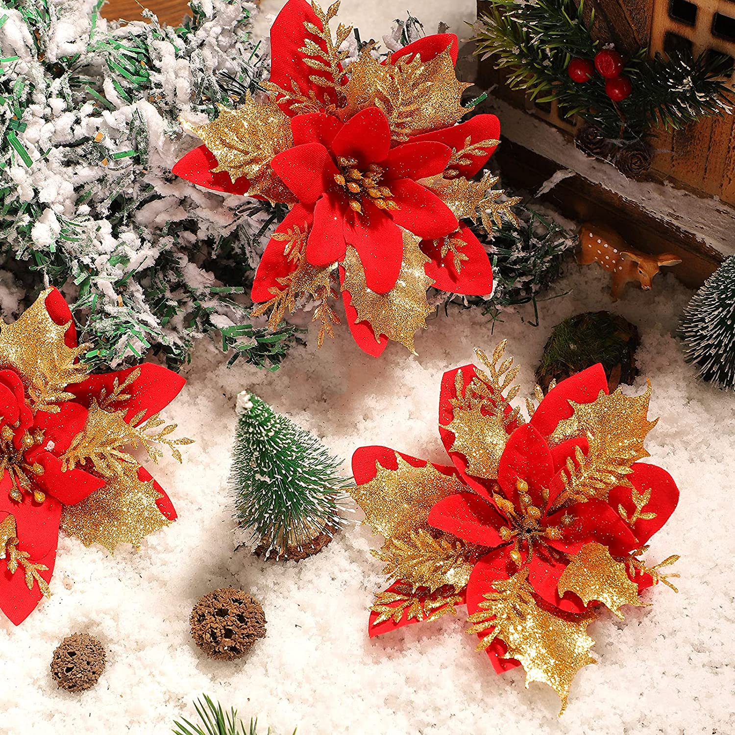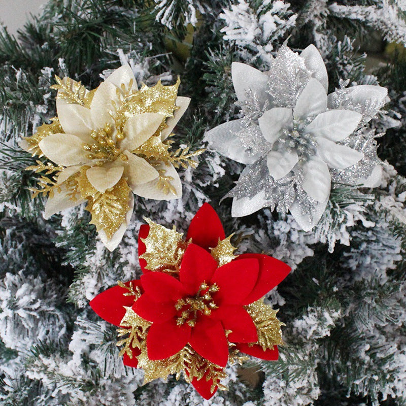 Artificial Fabric Poinsettia Flowers For Christmas Decor