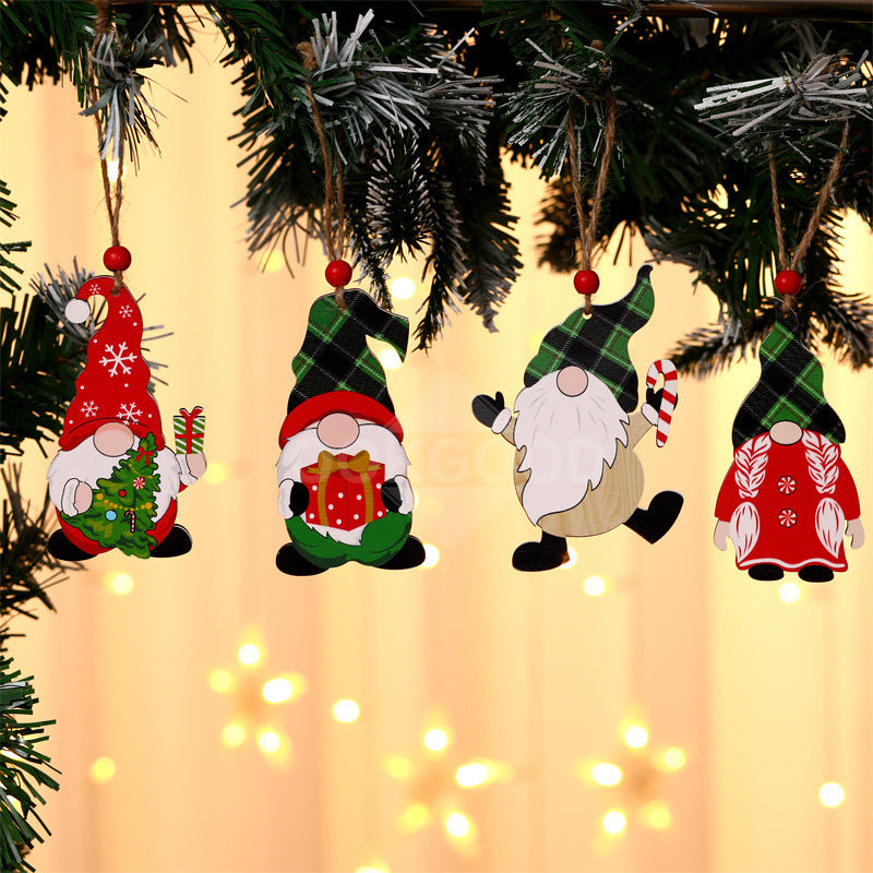 Christmas Themed Wooden Cartoon Gnome Hangings