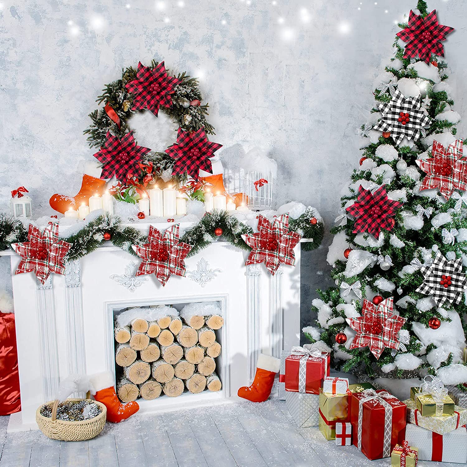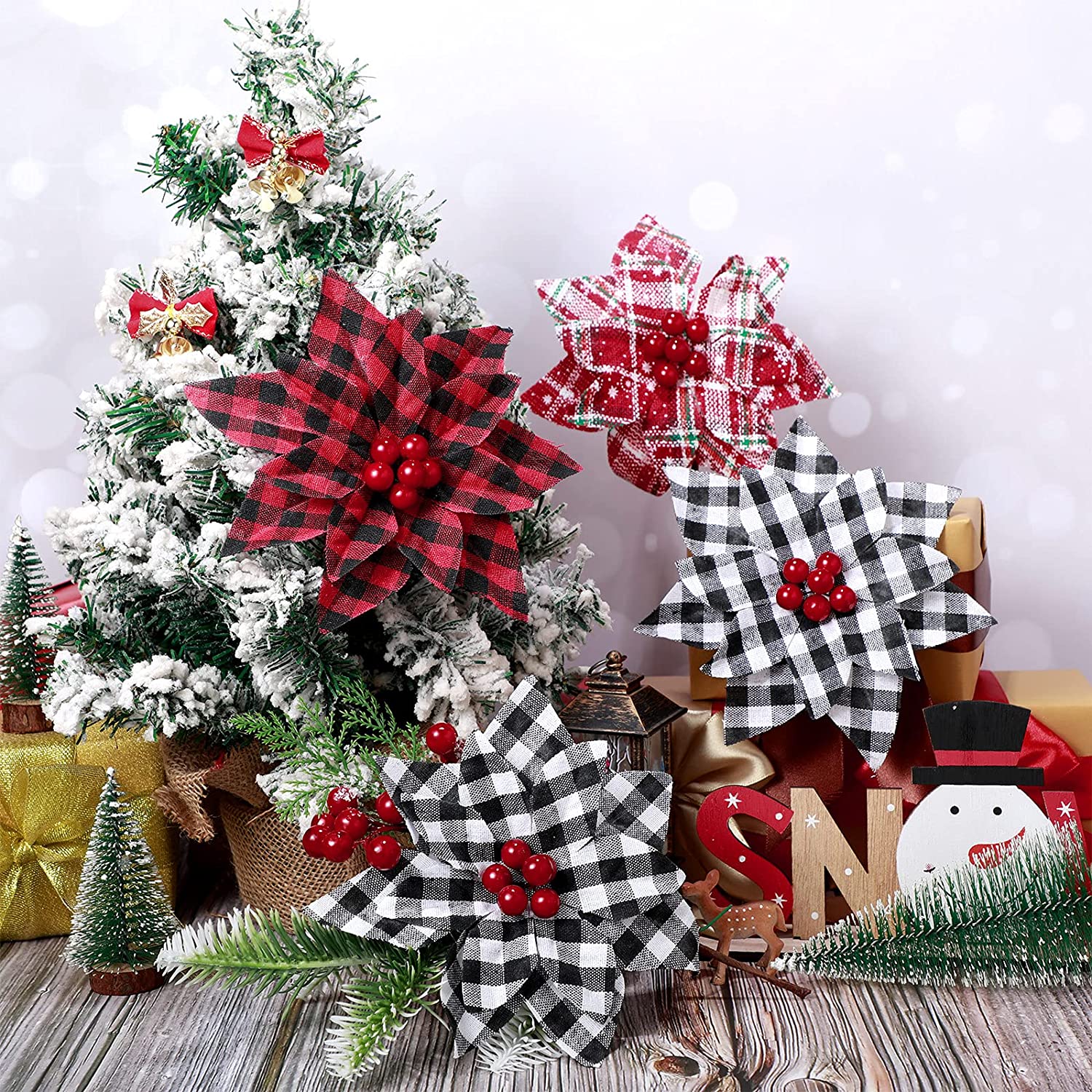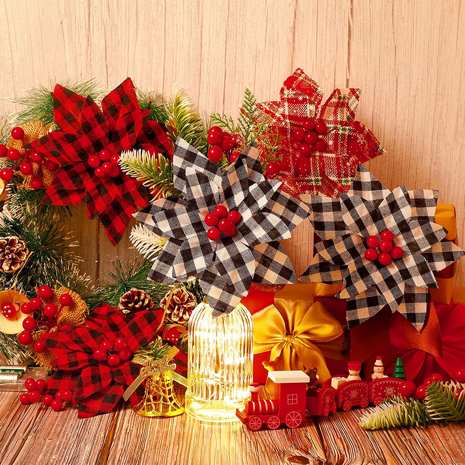 Artificial Plaid Poinsettia Flower For Christmas Decoration