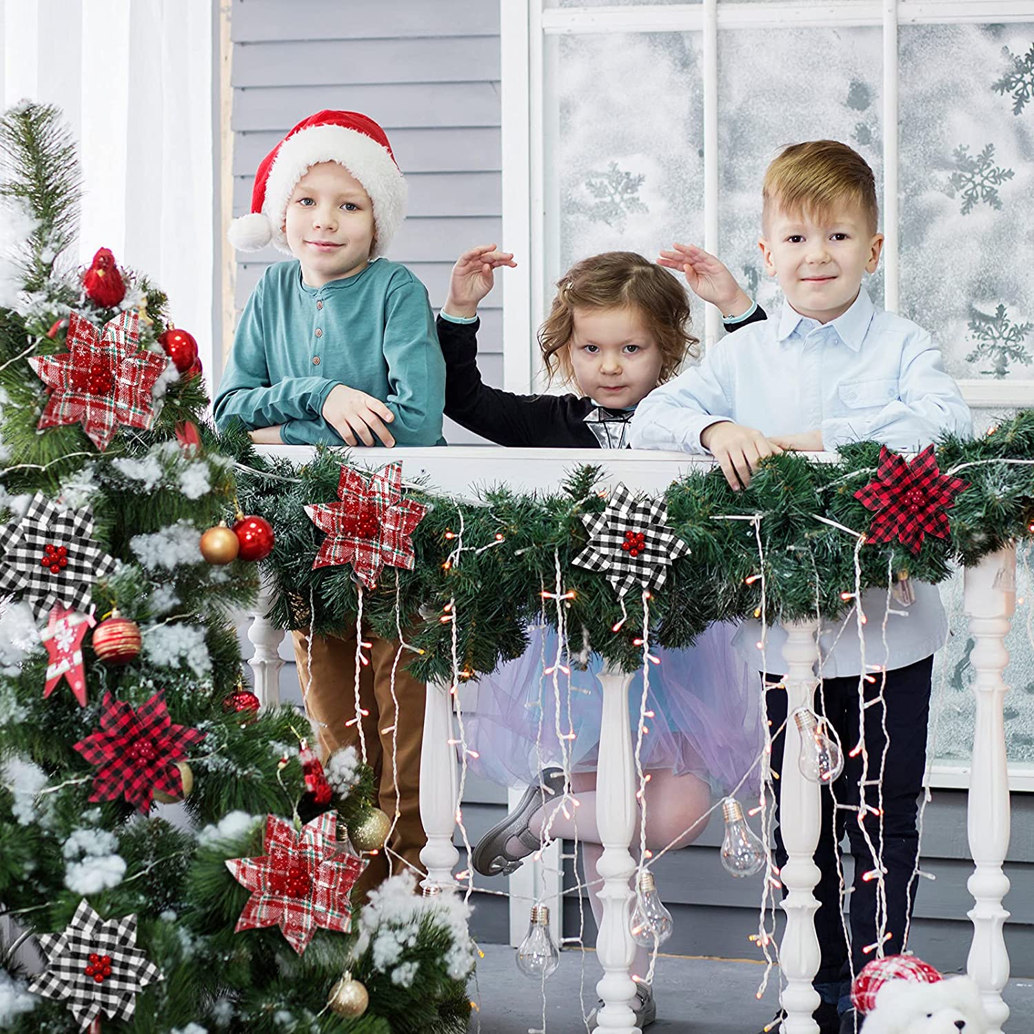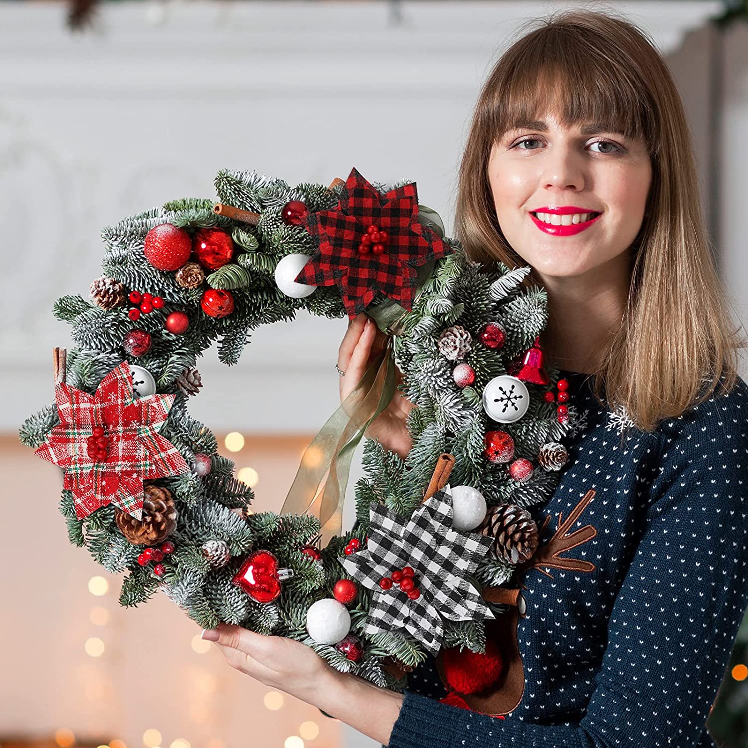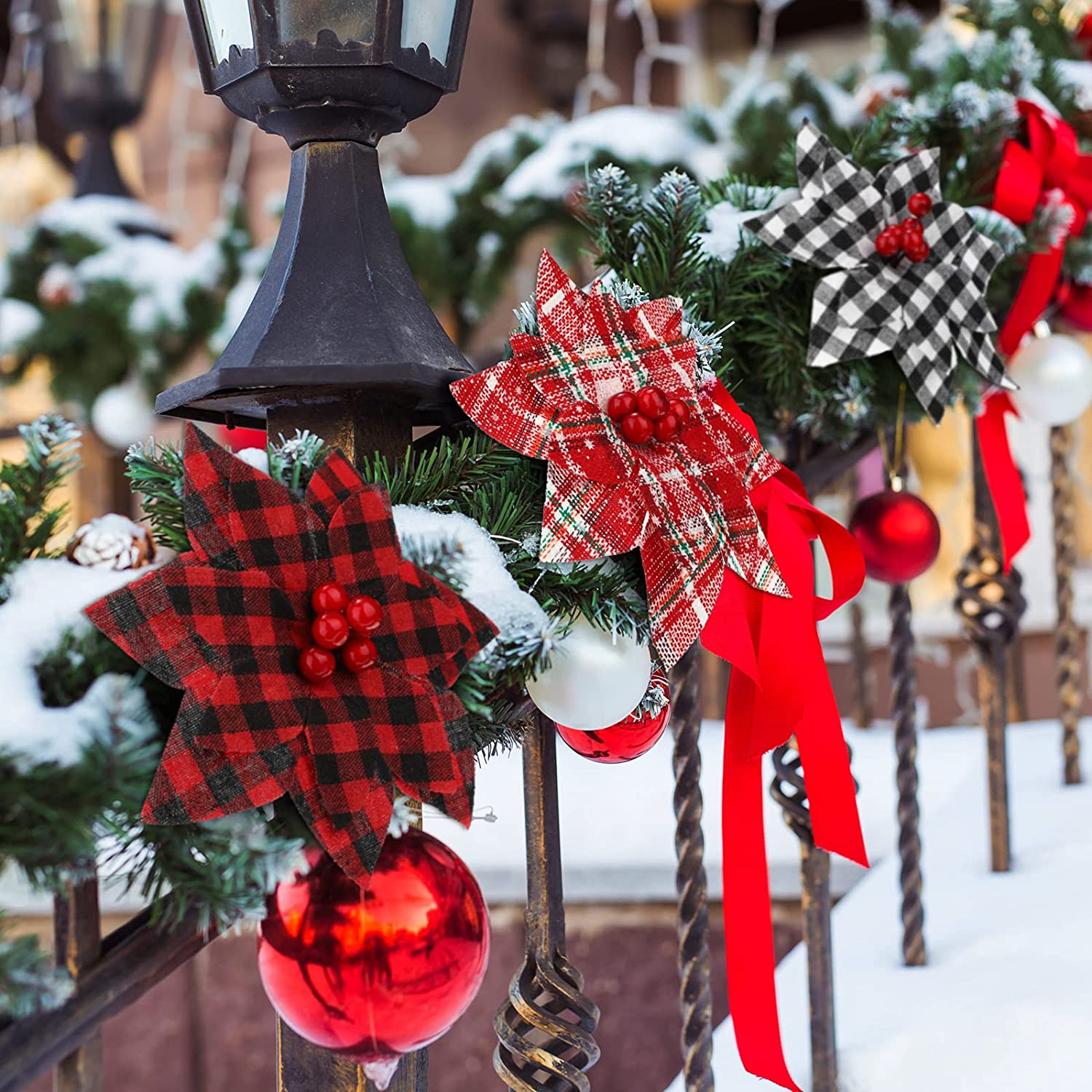Artificial Plaid Poinsettia Flower For Christmas Decoration