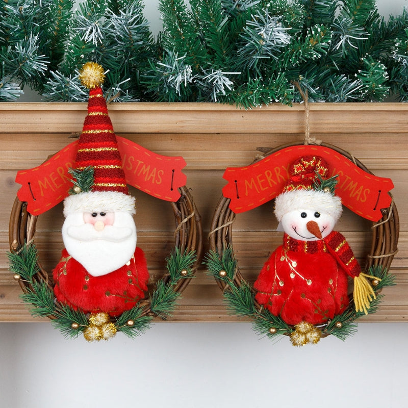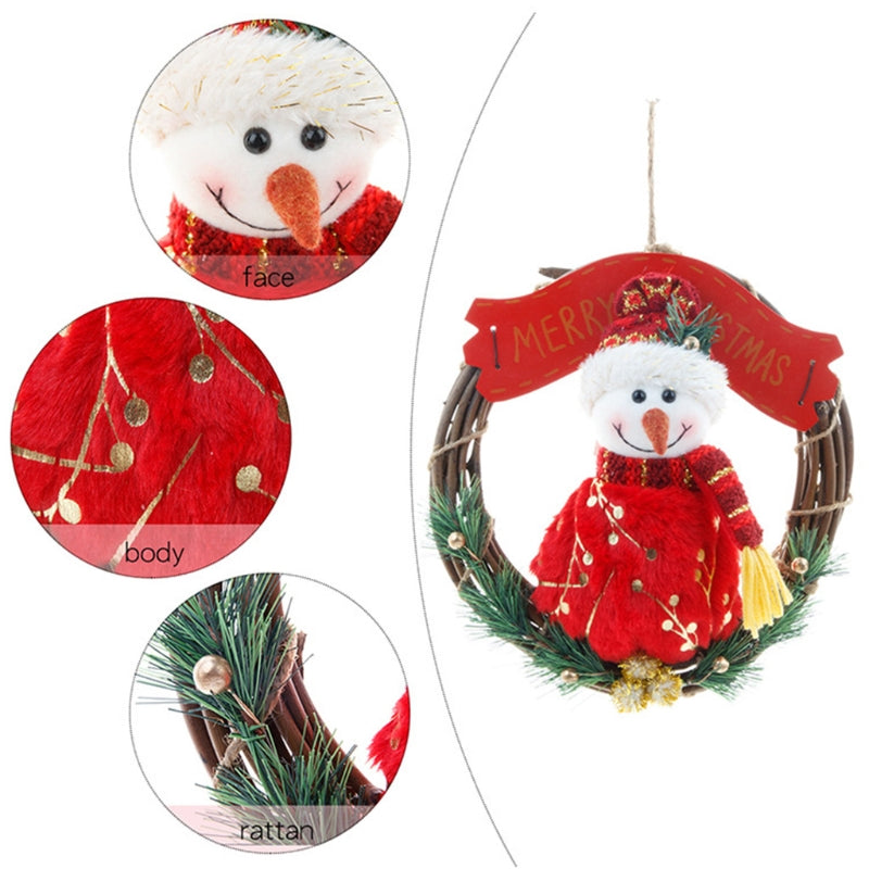 Christmas Wreath For Front Door Santa Claus Snowman Decorative
