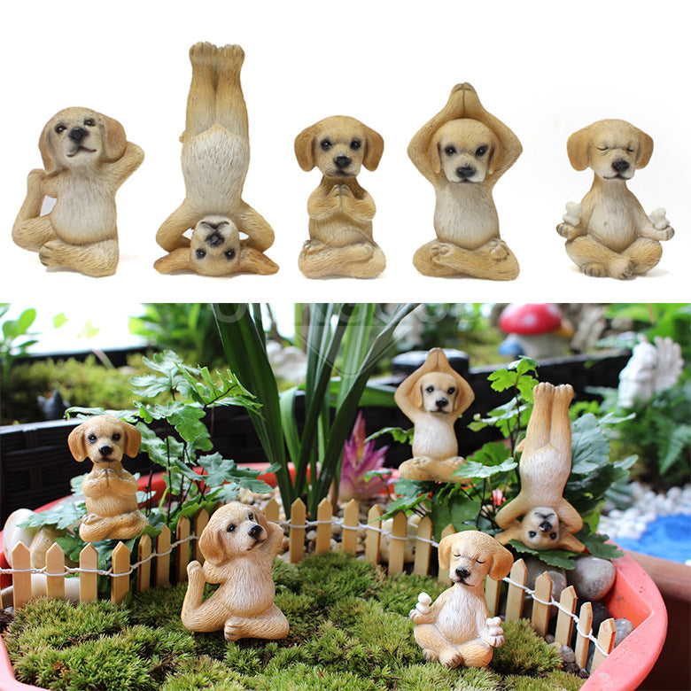 Resin Yoga Dog Statue Kit For Fairy Garden Decoration