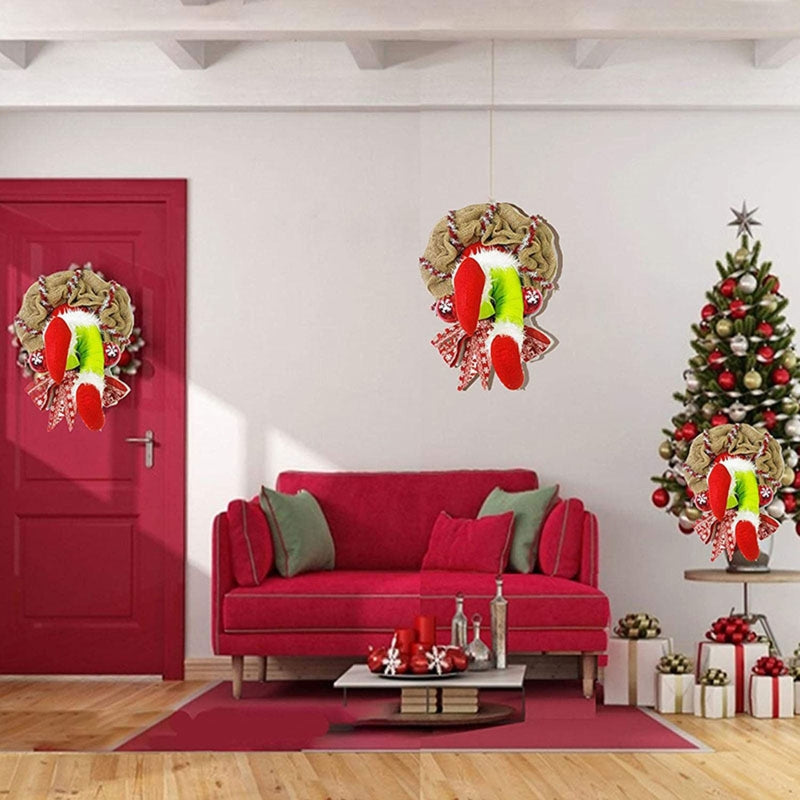 Christmas Wreath Stuffed Legs Stuck In Wall