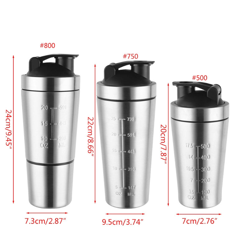 [1 Left]Stainless Steel Shaker Bottle Whey Protein Powder Mixing Bottles Sport Water Cup