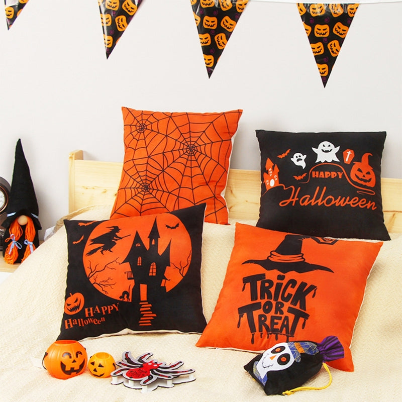 Happy Halloween Pillow Case Witch Hat Ghost Patterns Cushion Cover Decor