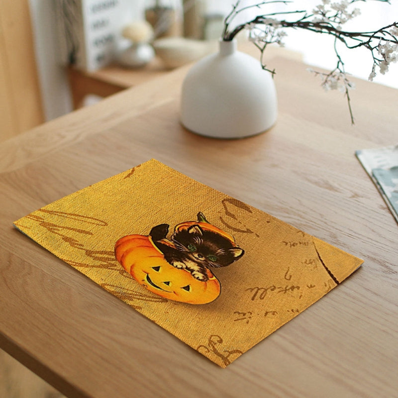 Halloween Placemats Ghost Pattern Linen Placemats For Halloween Parties