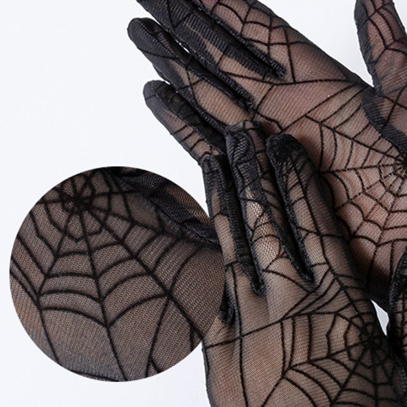 Halloween Spider Web Gloves Tattoo Cover Up Sun Protection For Driving