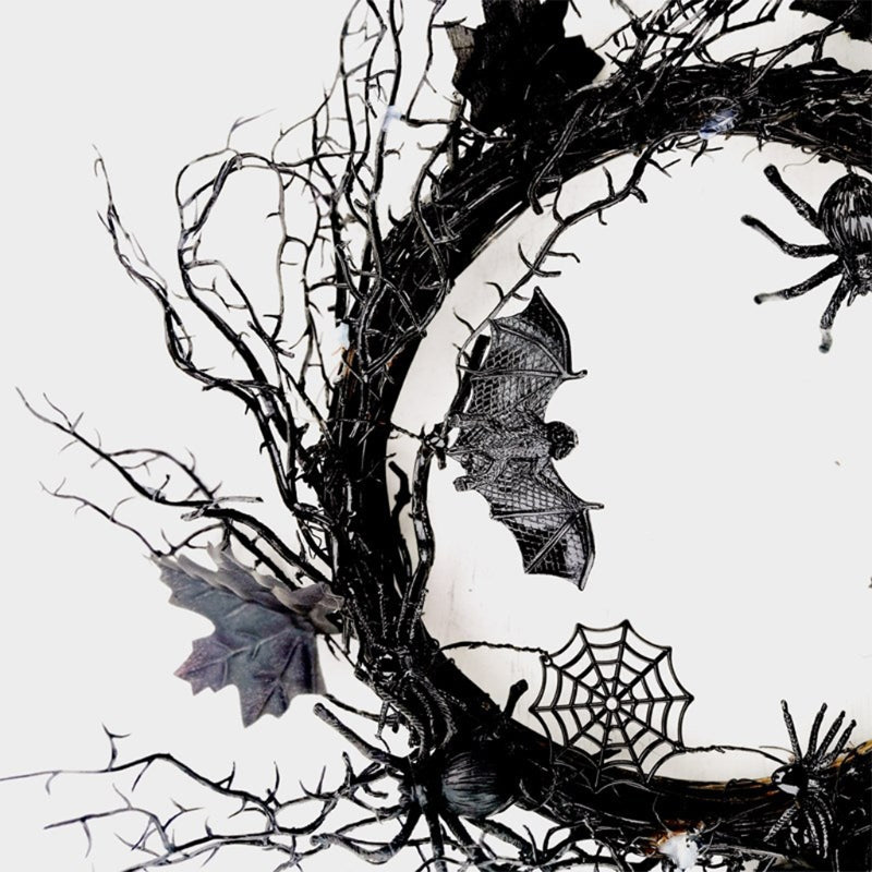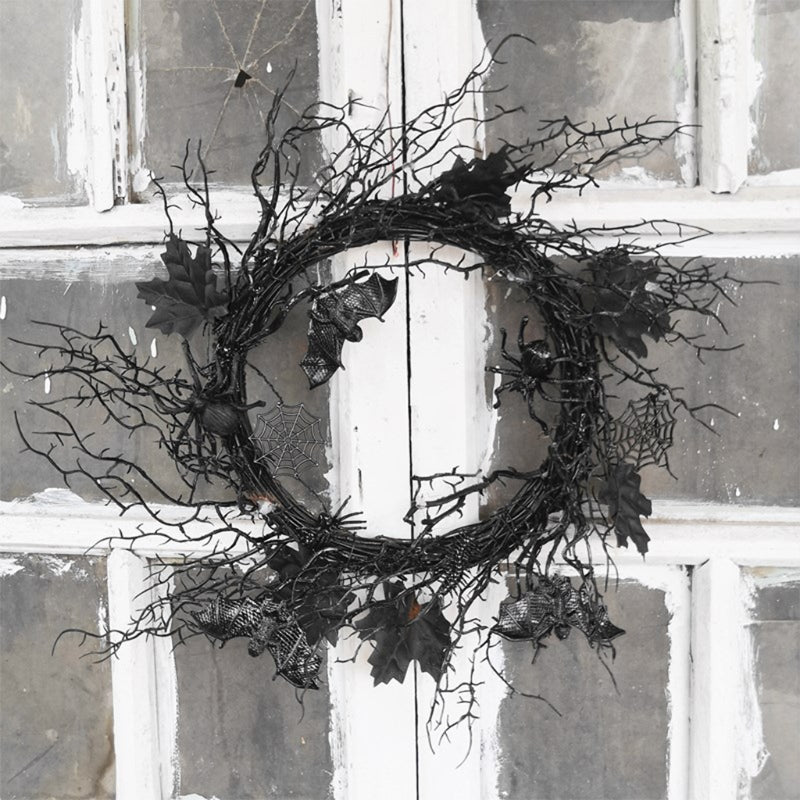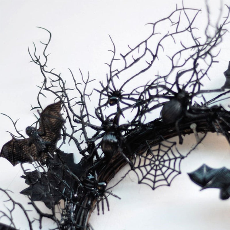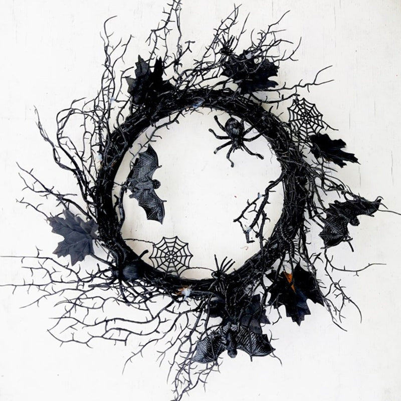11 Inch Black Natural Cocktail Feather Wreath Halloween Decorations Front Door