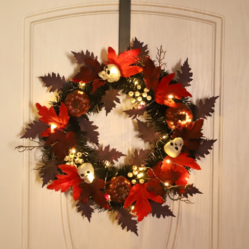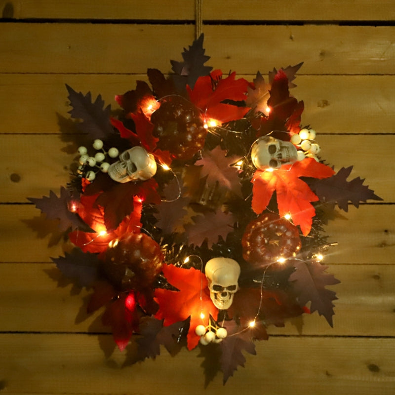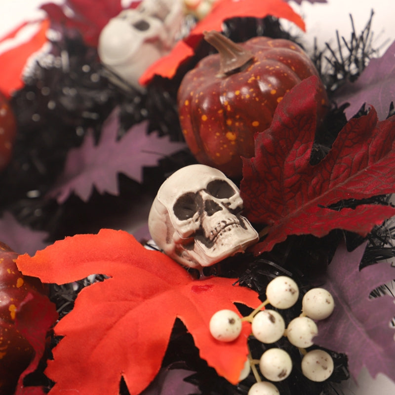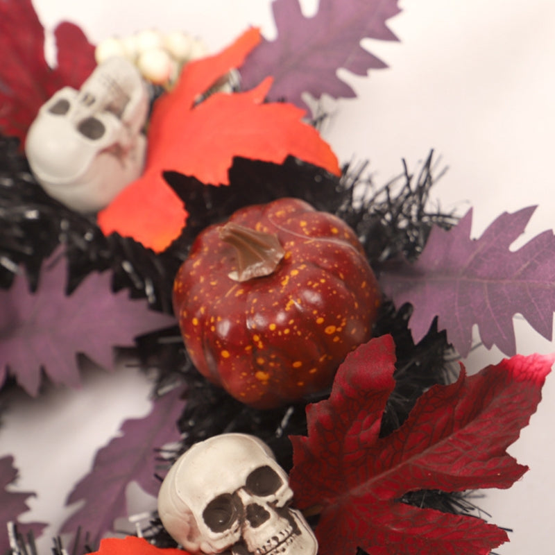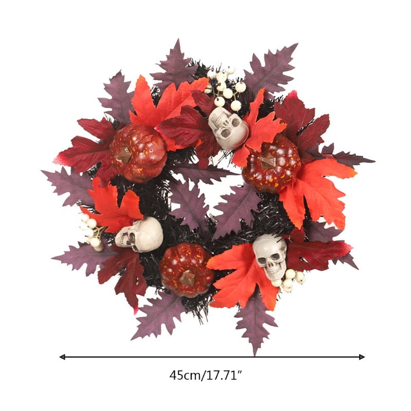 15.7 Inch Happy Halloween Door Wreath With Pumpkin And Skull