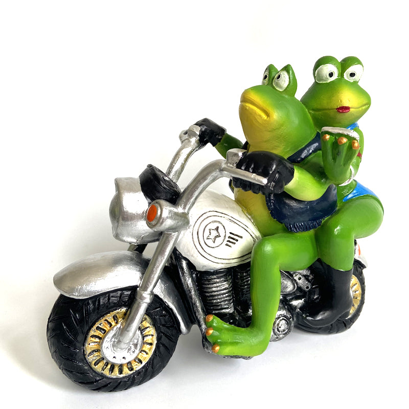 Resin Frog Couple Motorcycle Home Garden Ornaments