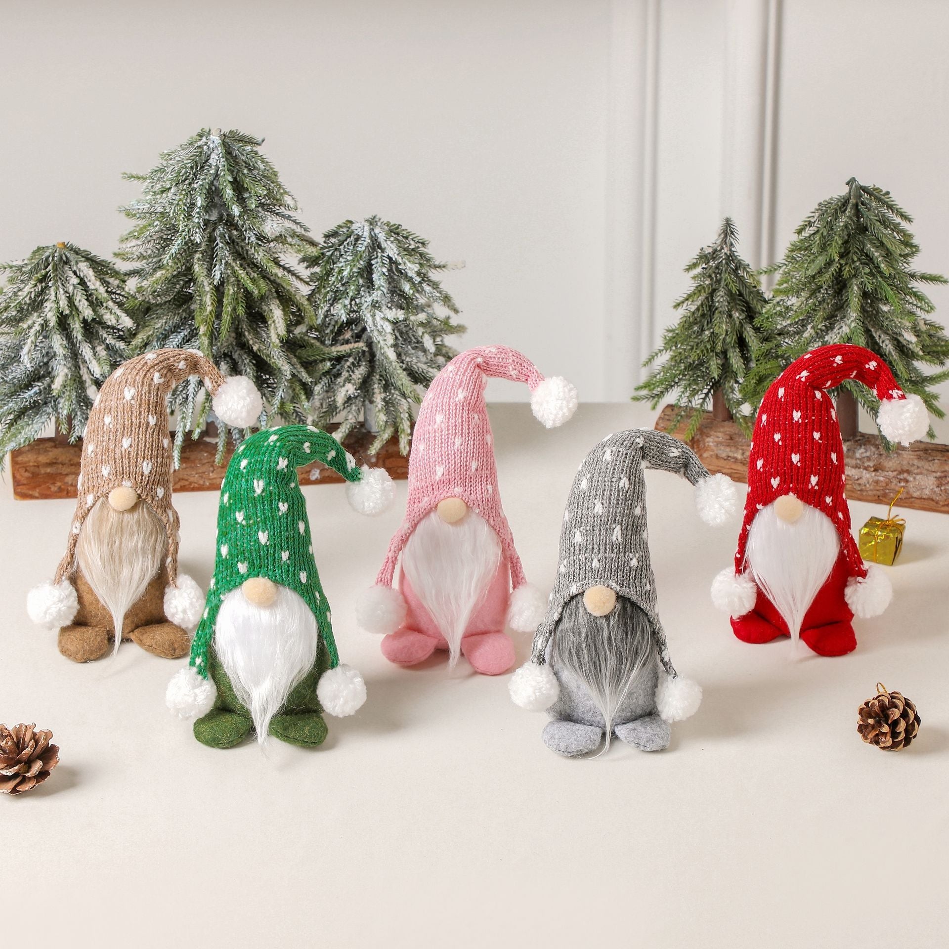 Christmas Nordic Forest knit hat sitting gnomes