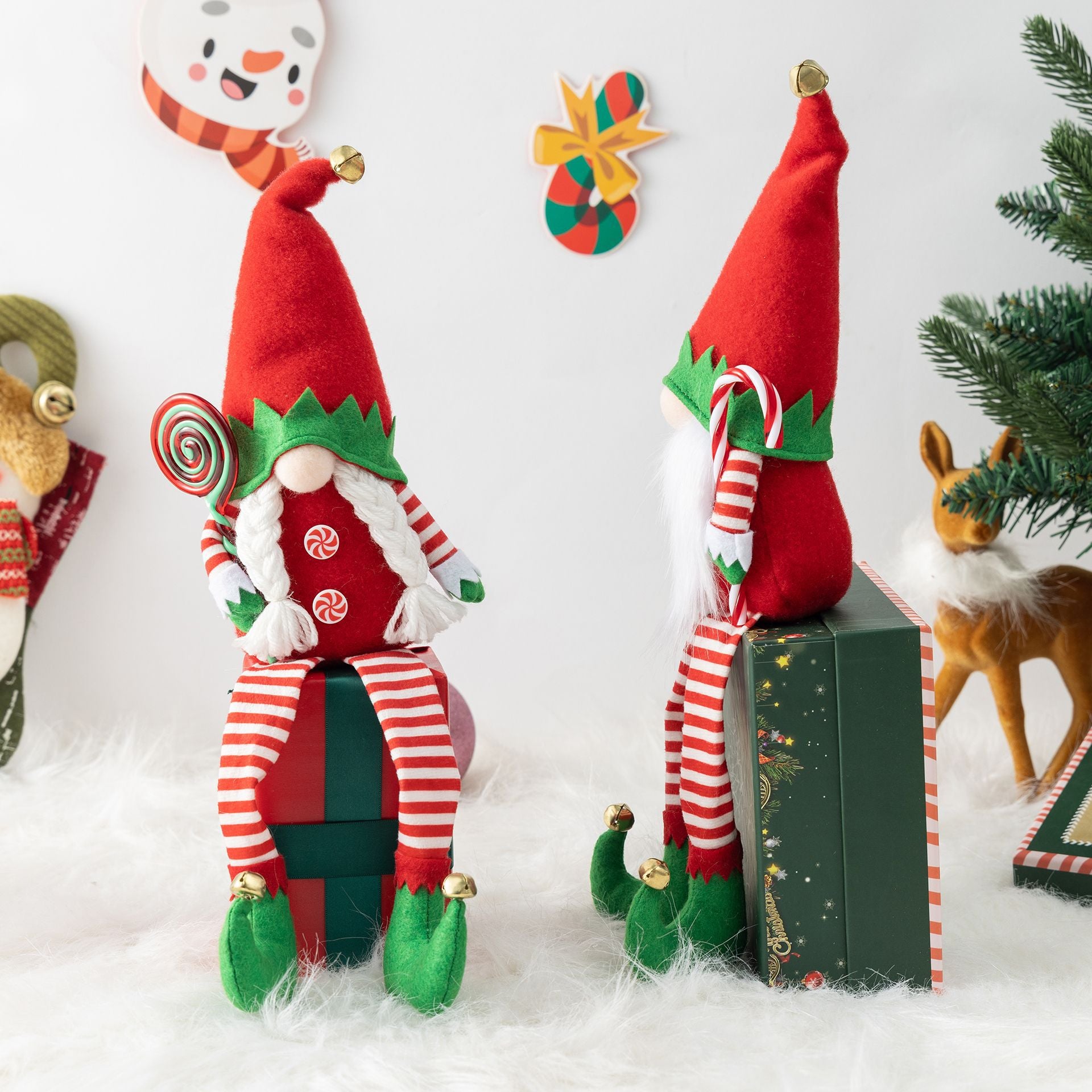 Cute Christmas Elk Gnomes with Scarf