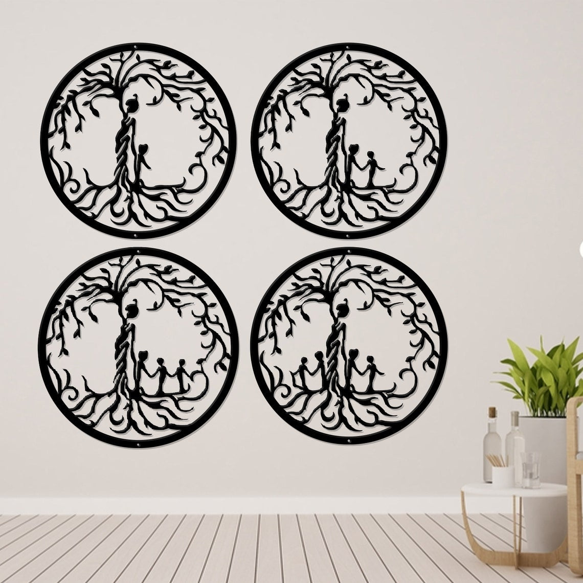 Tree Of Life Mother And Children Metal Wall Art