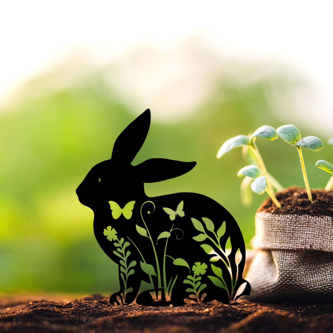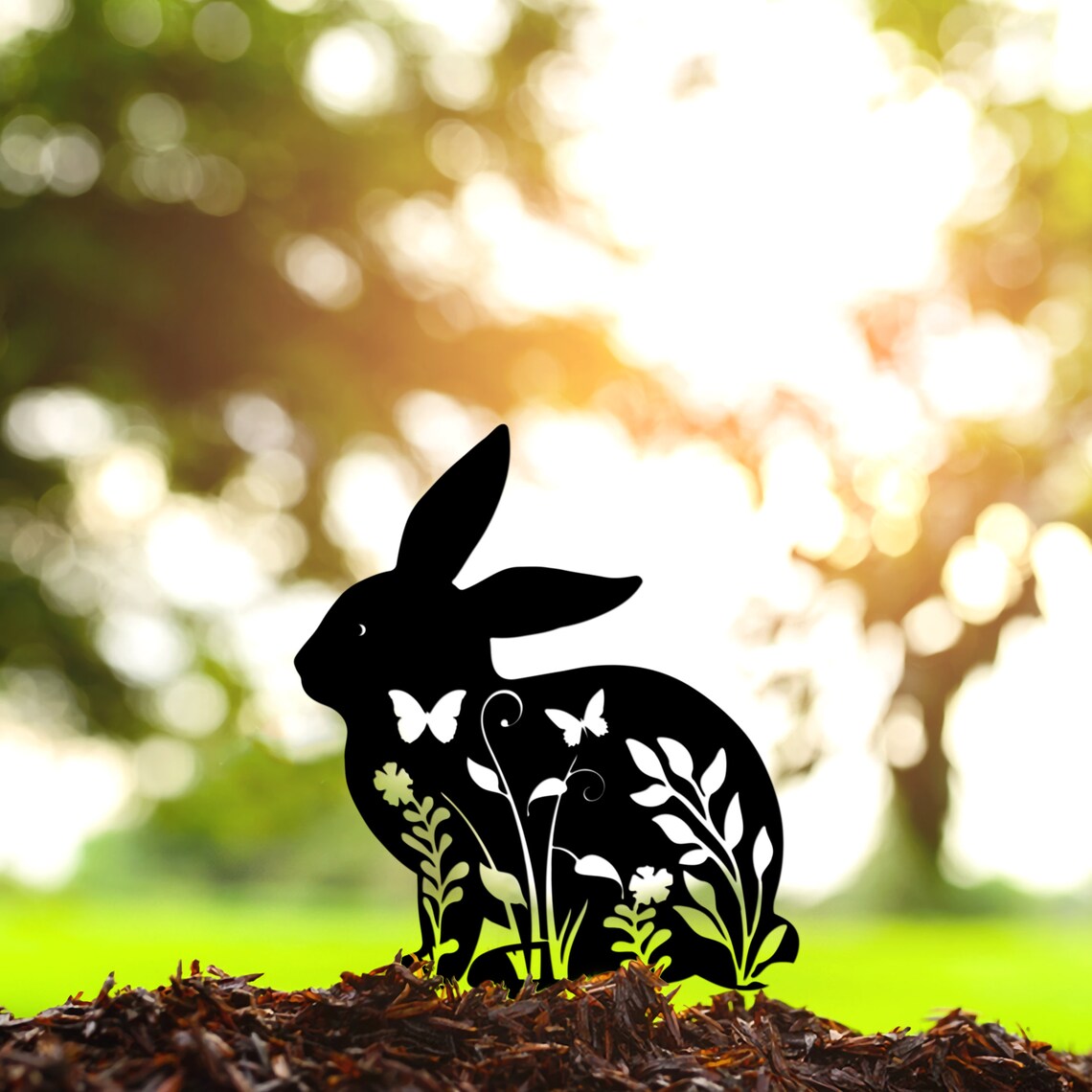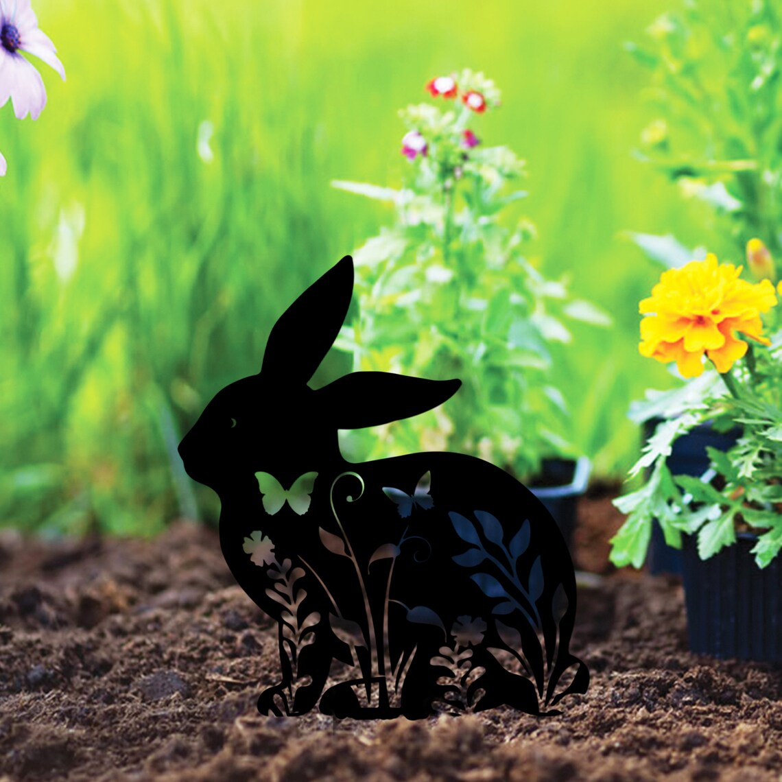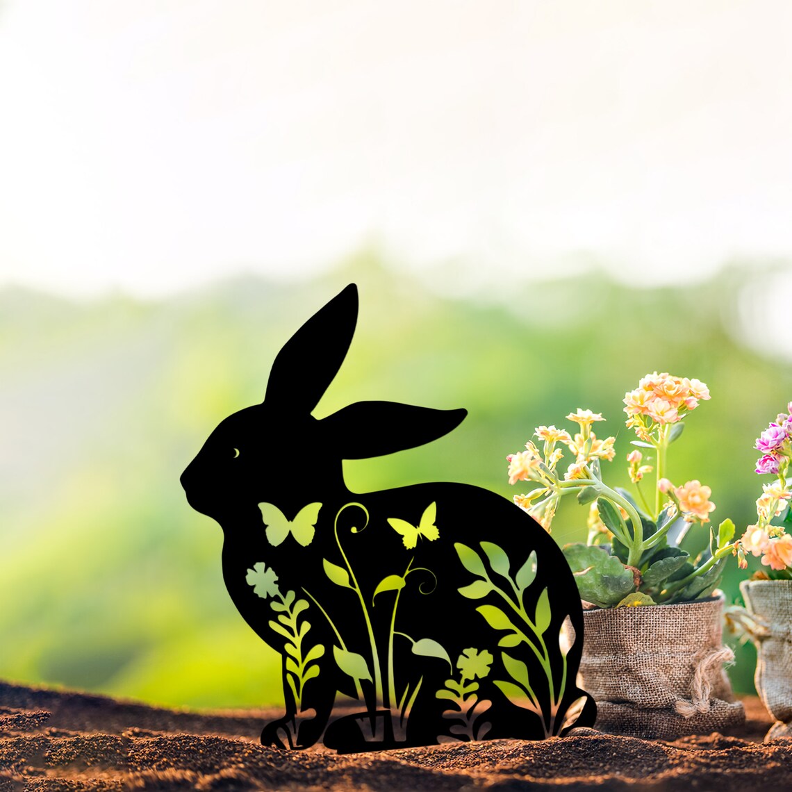 Floral Bunny Silhouette Metal Yard Stake