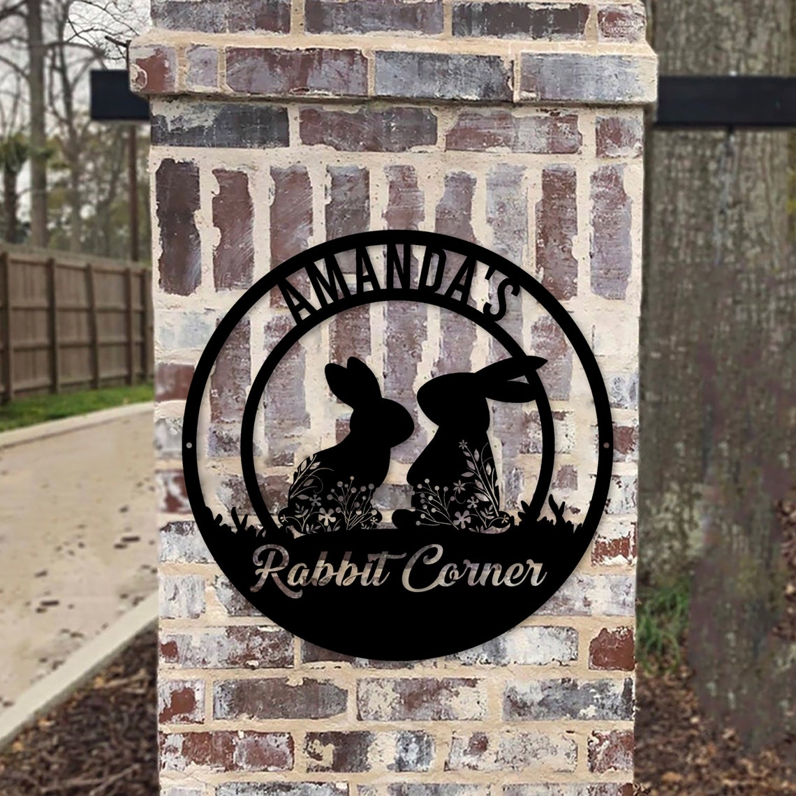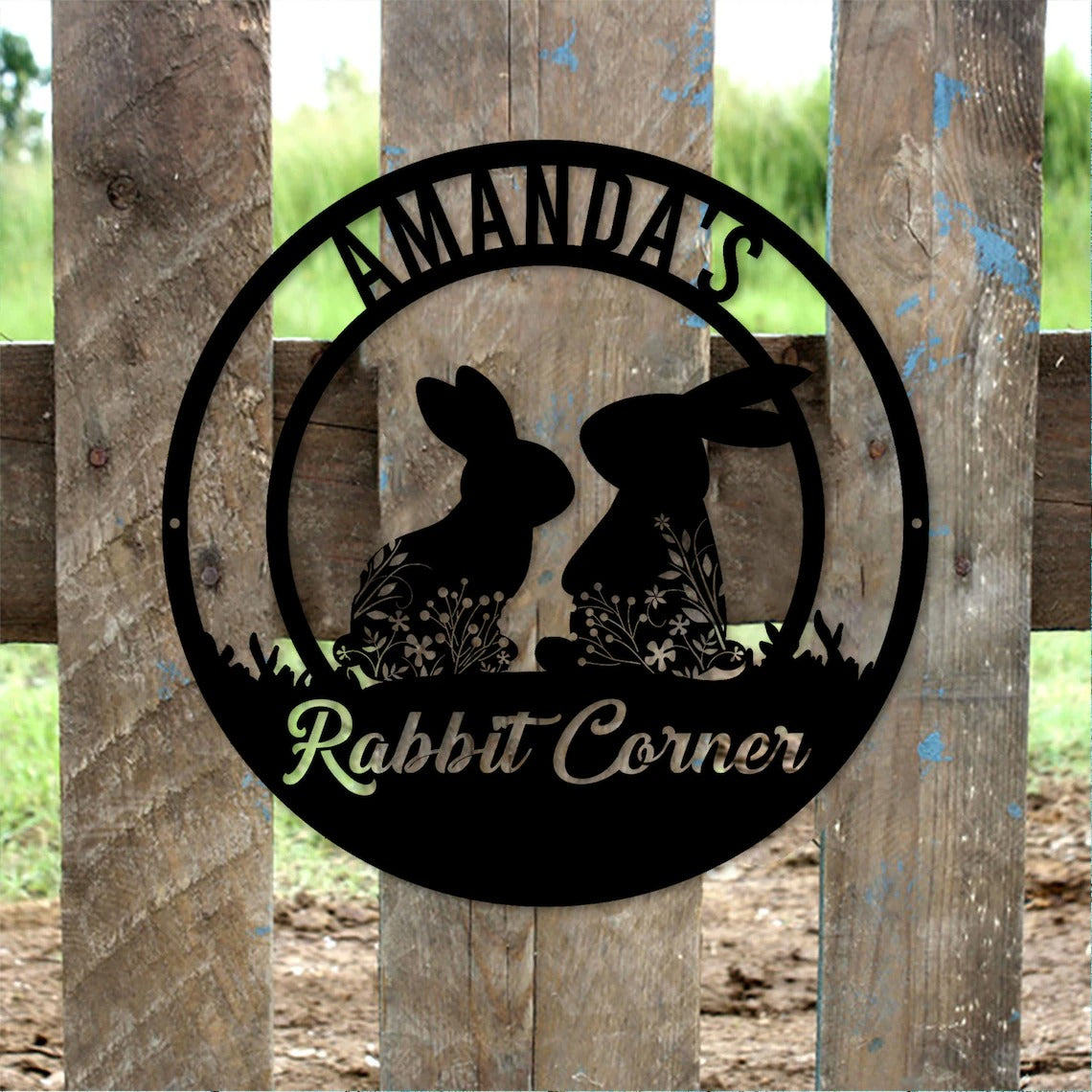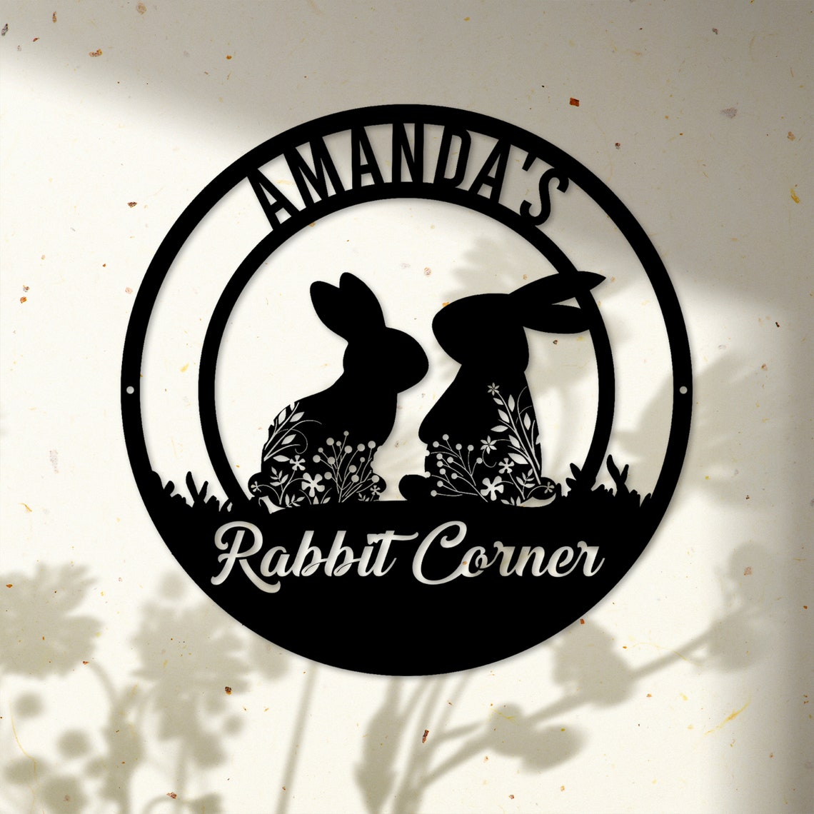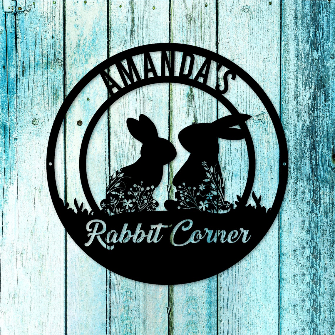 Personalized Custom Floral Rabbit Metal Art Sign