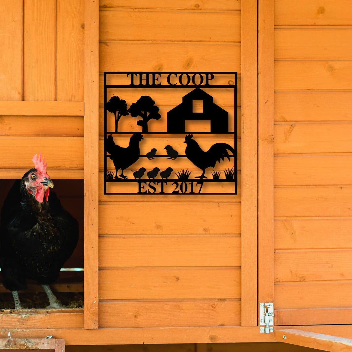 Personalized Custom Chicken And Rooster Metal Art Sign