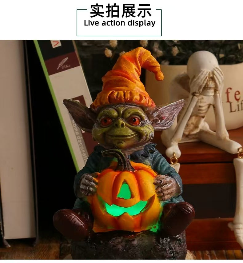 Halloween Pumpkin Lantern Elf Resin Outdoor Deco