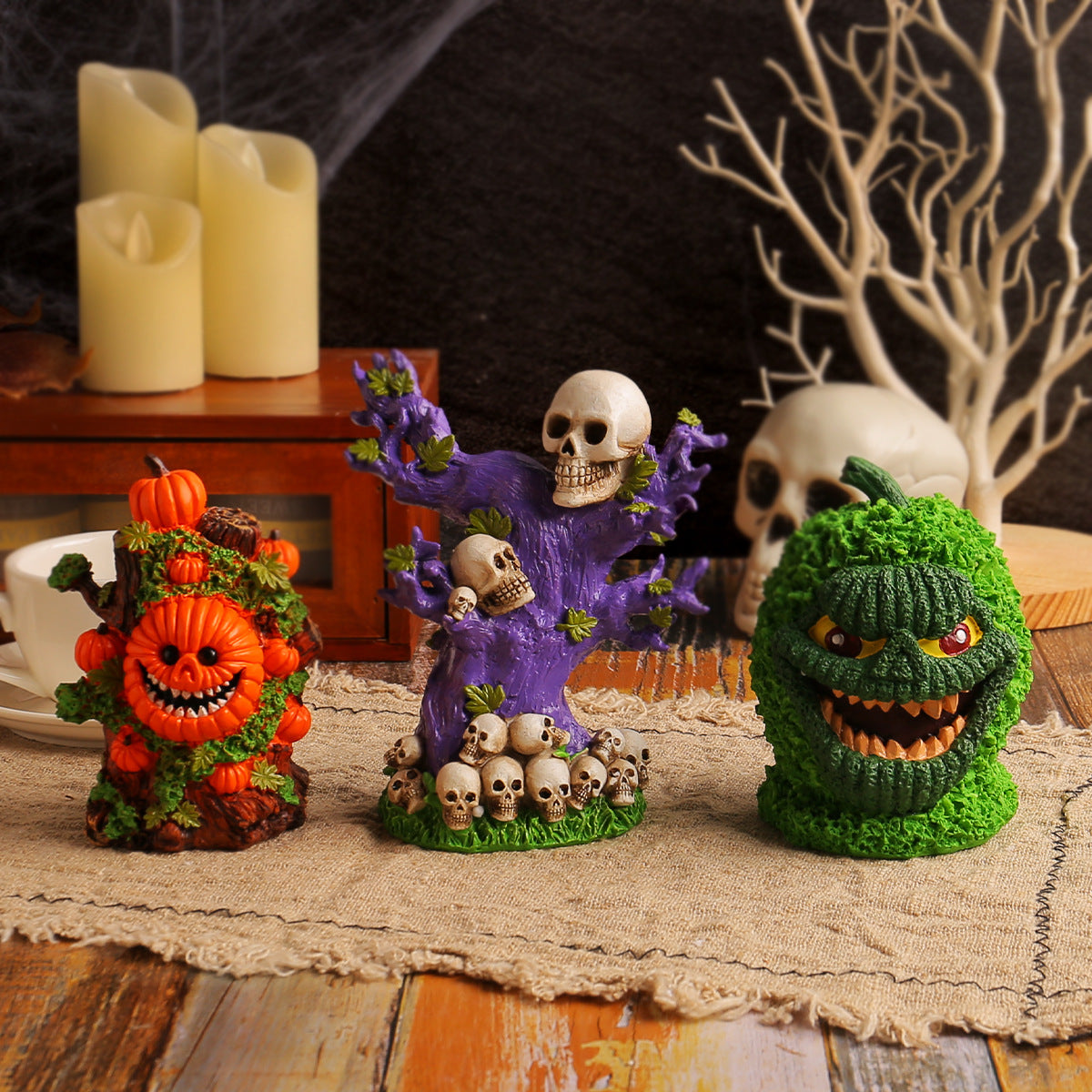 【Auto 30% OFF】Halloween Dryad/Green Pumpkin Monster/Skull Tree Horror Resin Deco