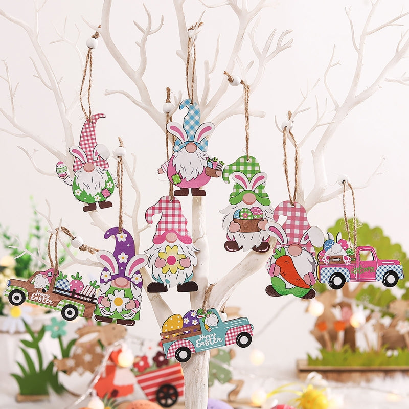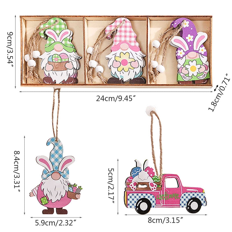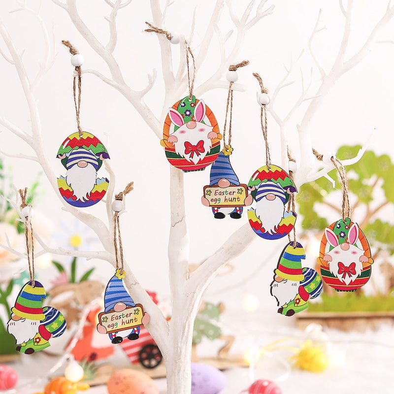 12pcs Easter Wooden Gnome Hanging Ornaments