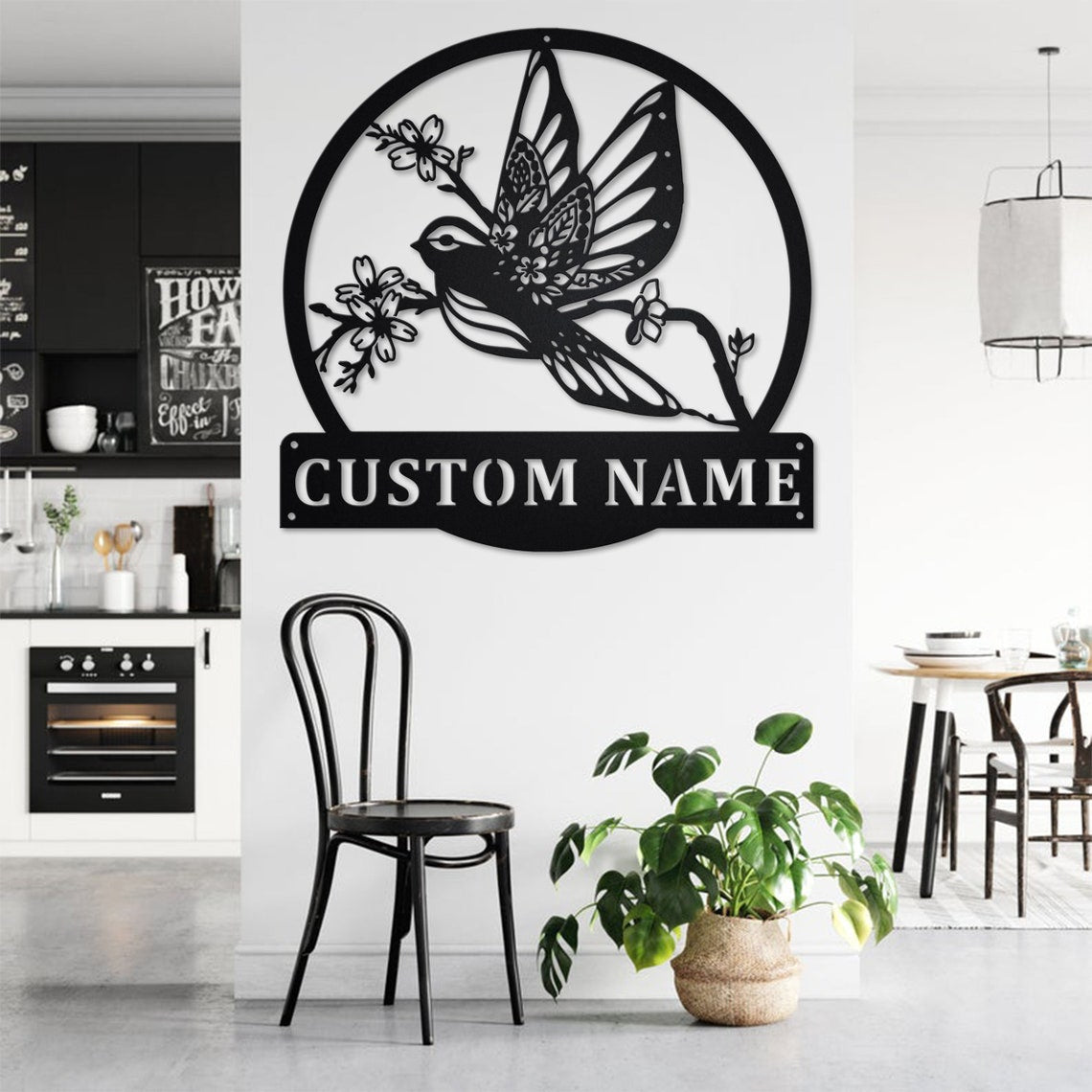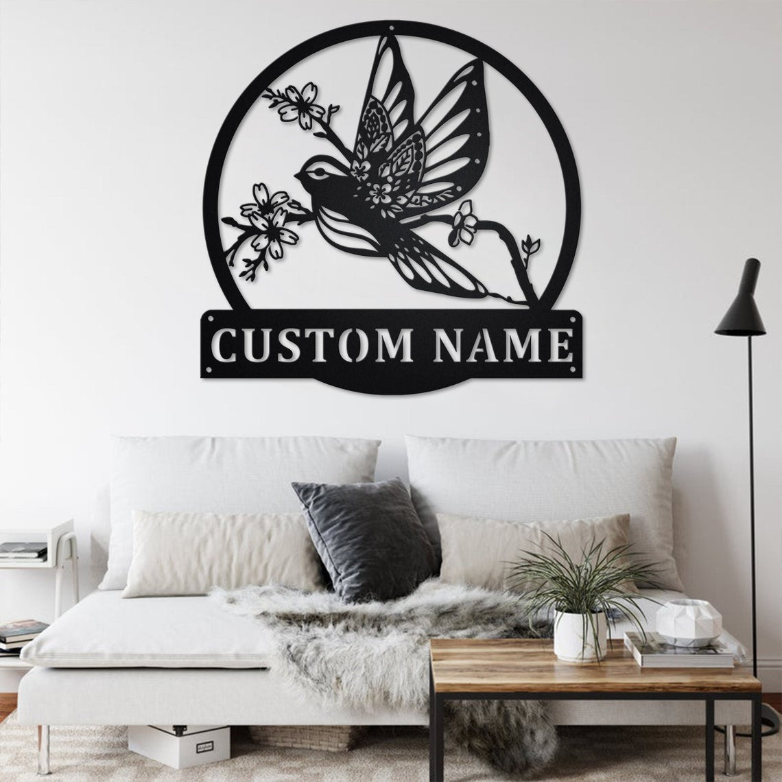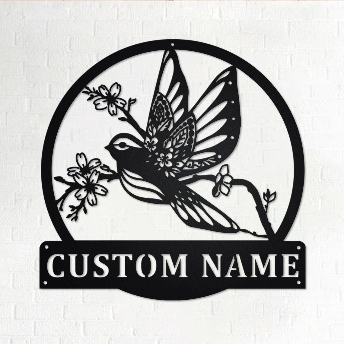 Personalized Custom Bird With Flower Wings Metal Wall Art