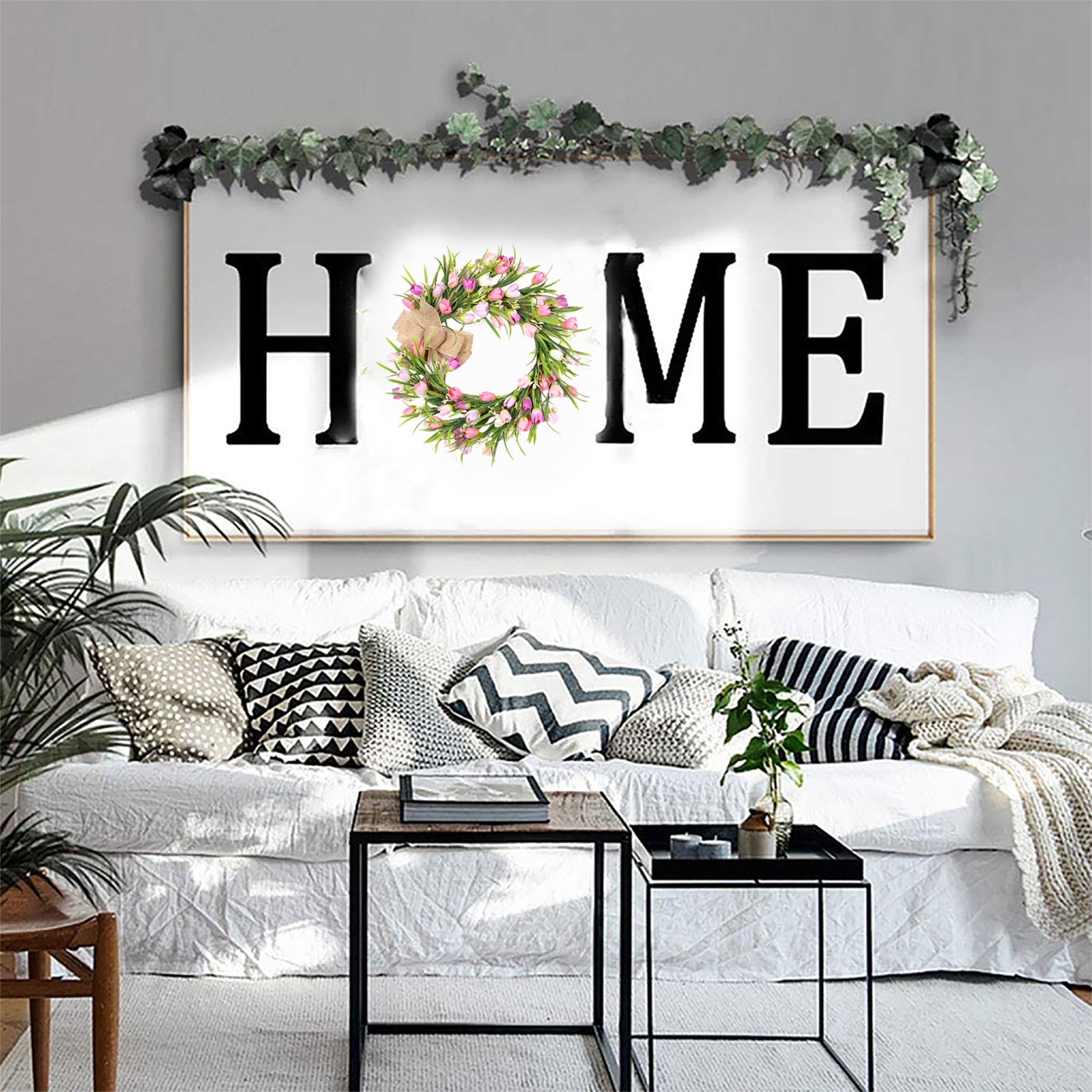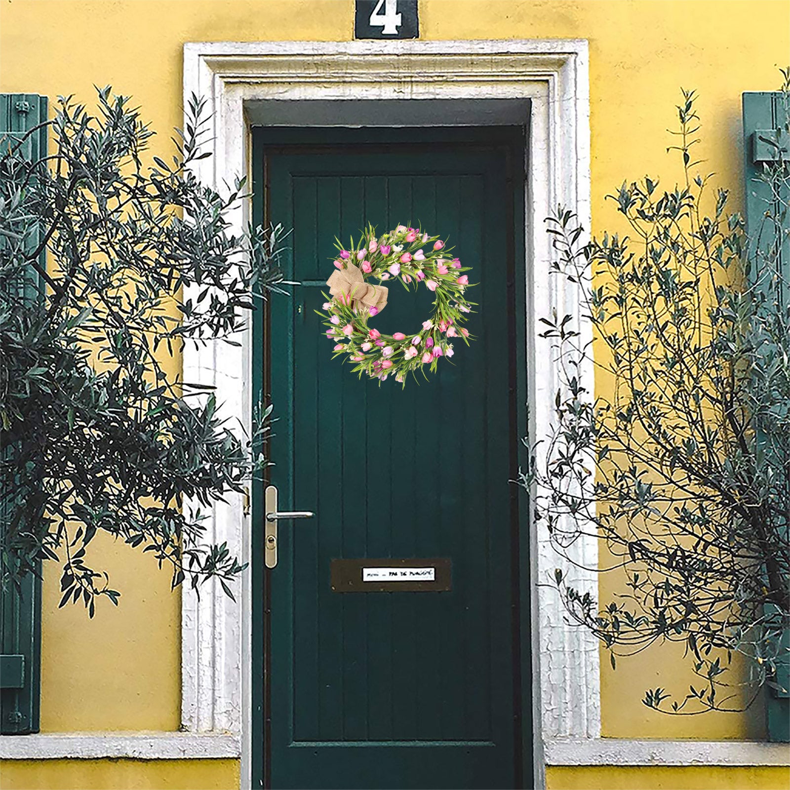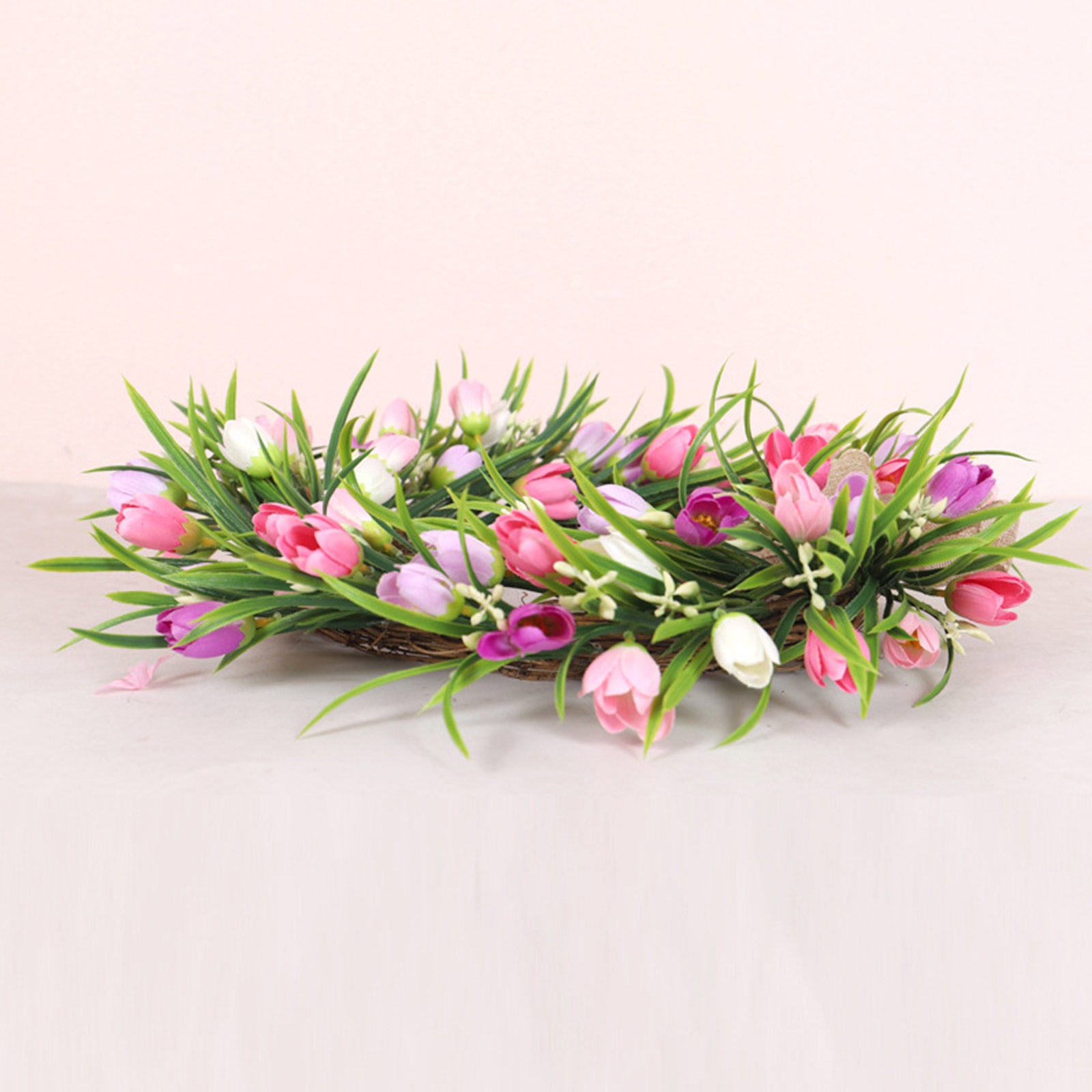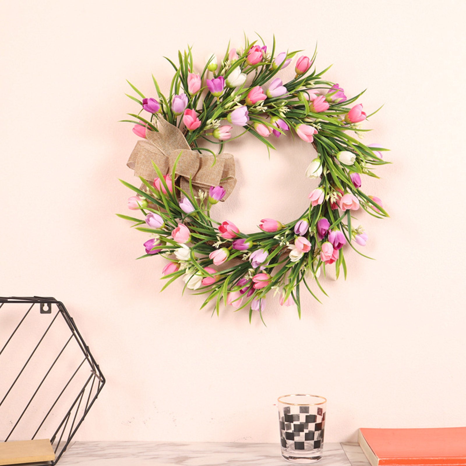 Artificial Tulip Wreath With Brown Bow Tie
