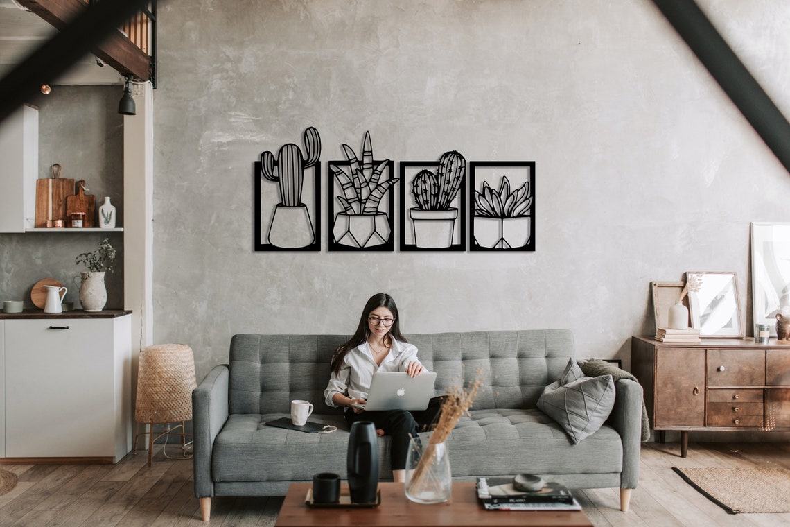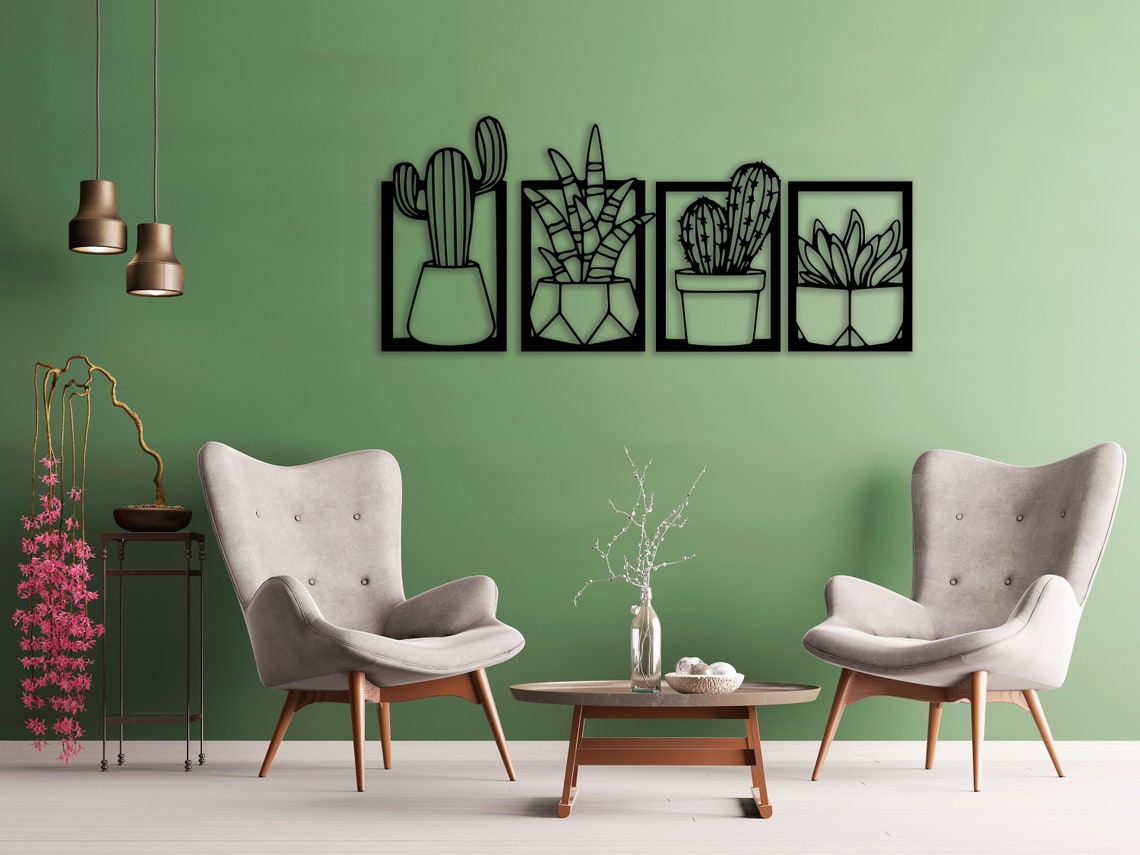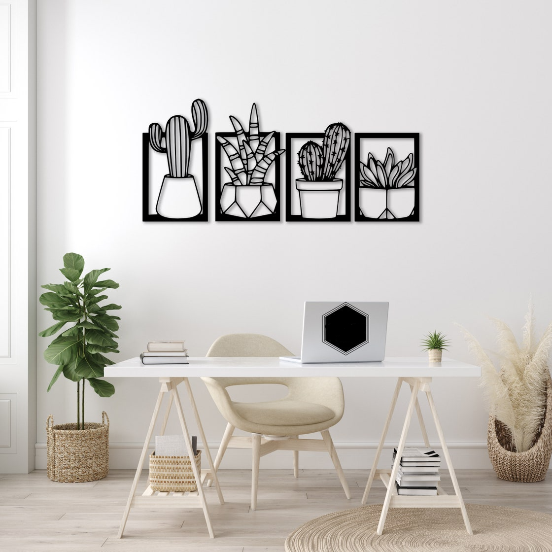 Set Of 4 Metal Cactus Wall Art Decor