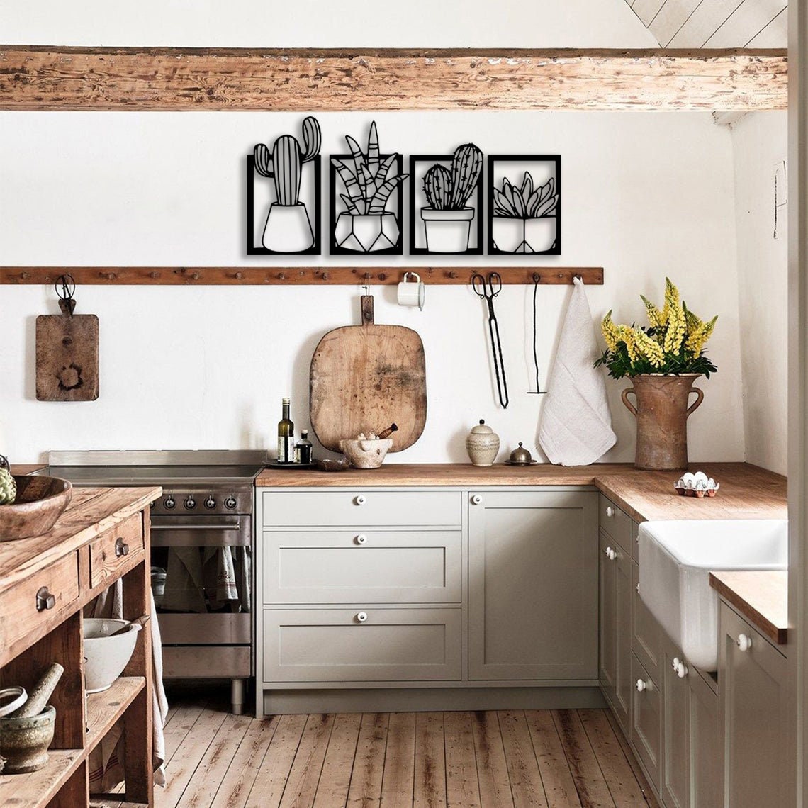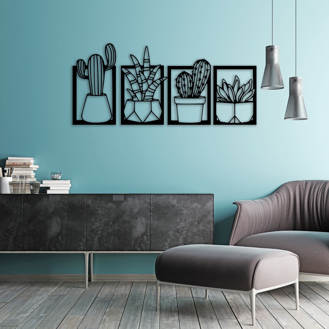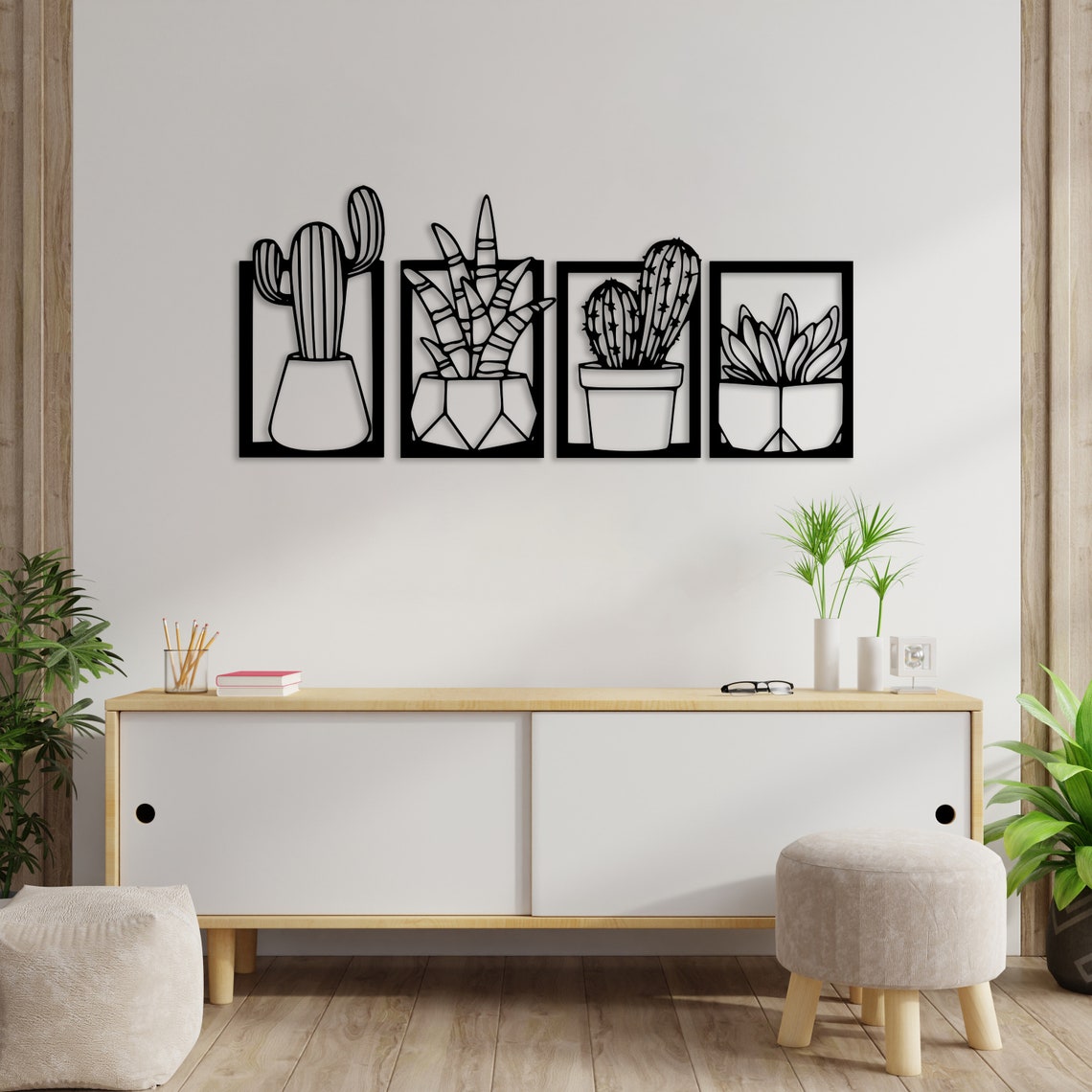 Set Of 4 Metal Cactus Wall Art Decor
