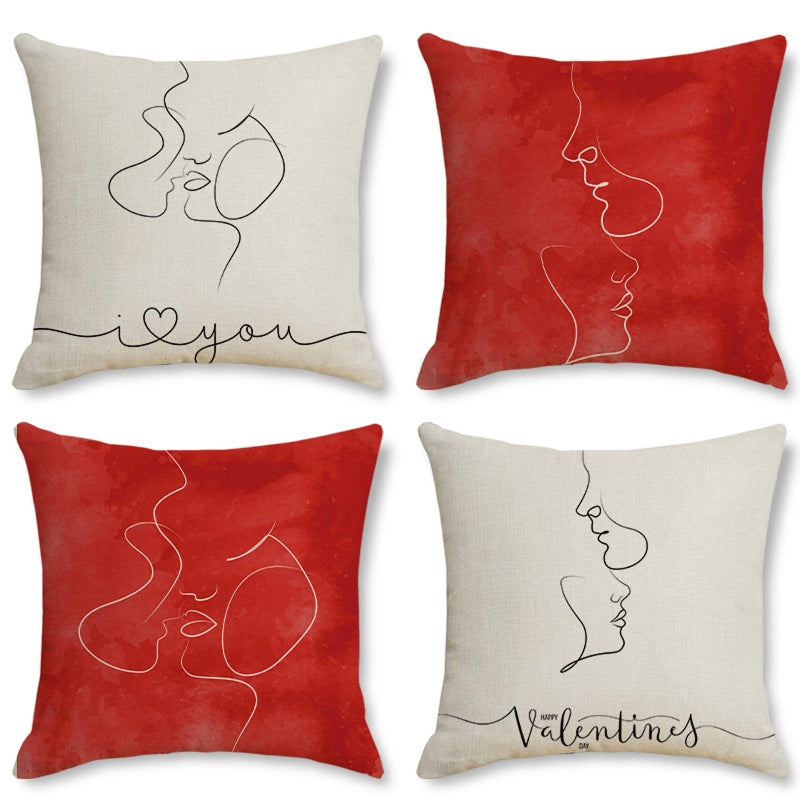 18x18 Inch Valentine's Day Line Pillowcase Plaid Cushion Case Gift