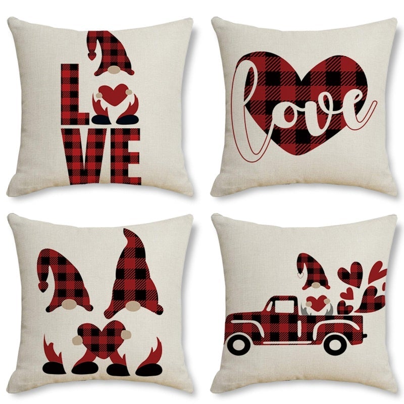 18x18 Inch Valentine's Day Love Pillowcase Plaid Cushion Case Gift