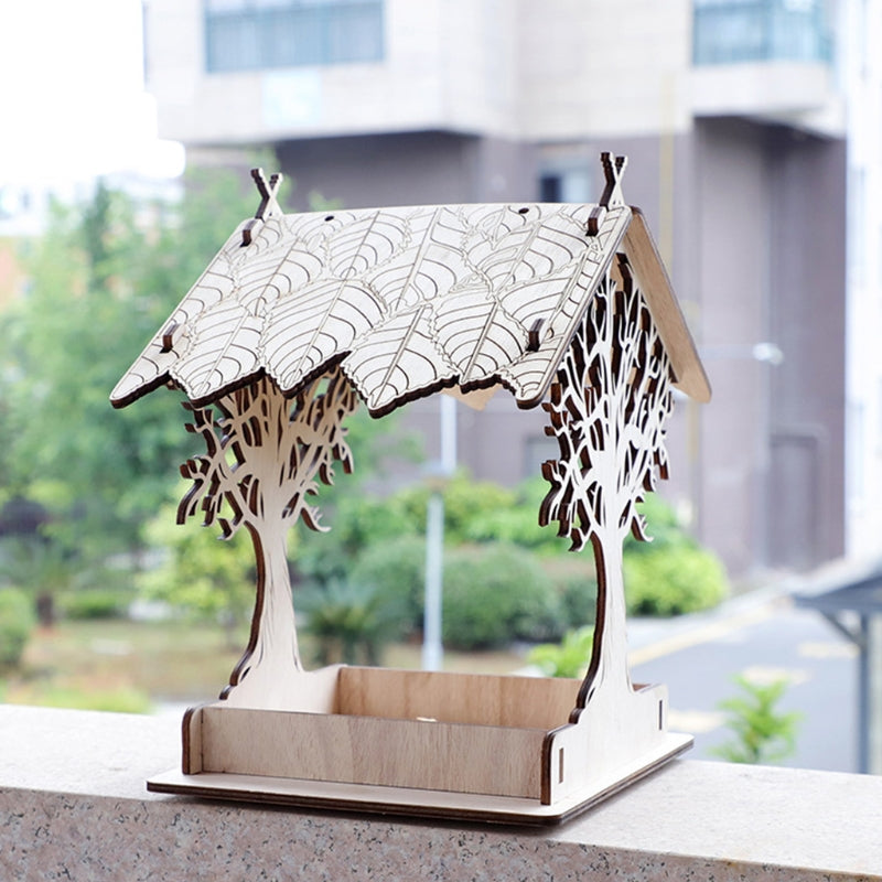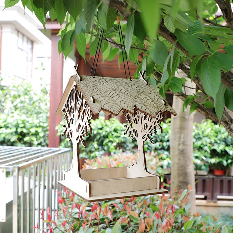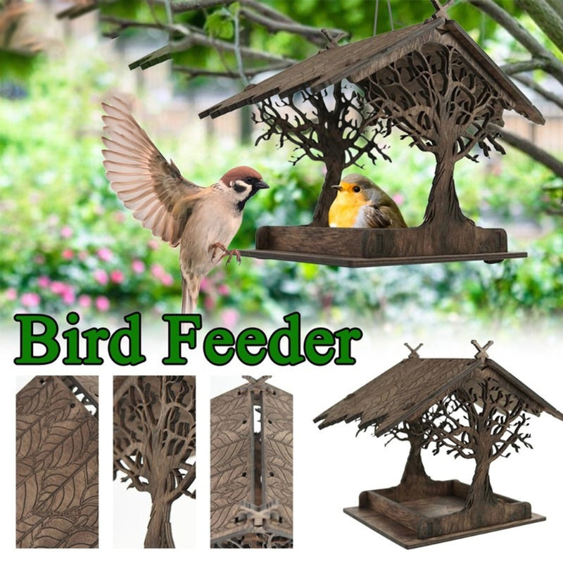 Wooden Bird Feeder With Roof Hanging Birdhouse Squirrel Proof Garden Decor