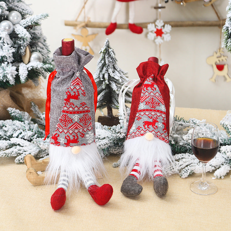 3D Long Hat Plush Gnome Wine Bottle Cover