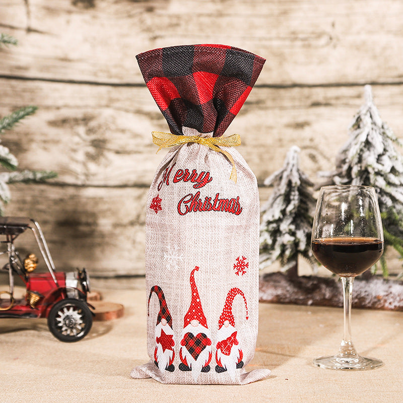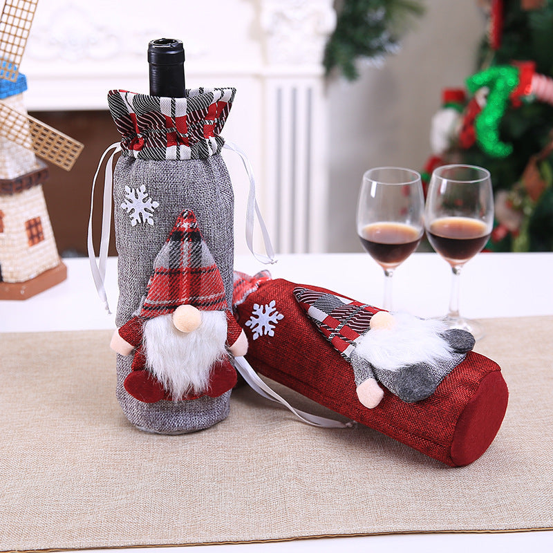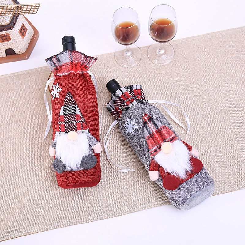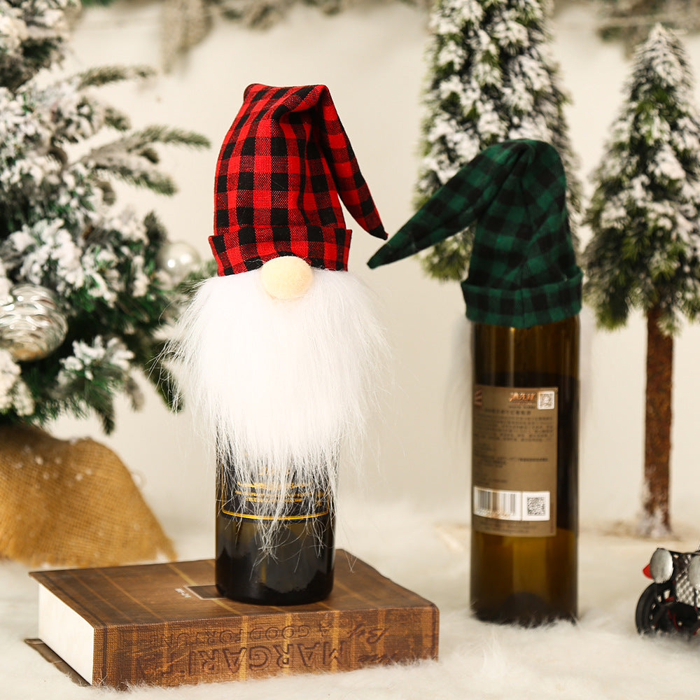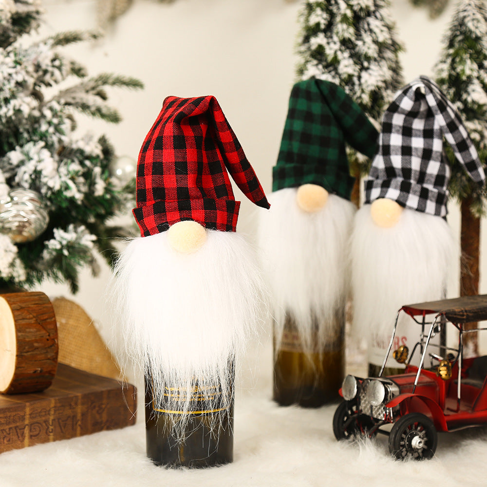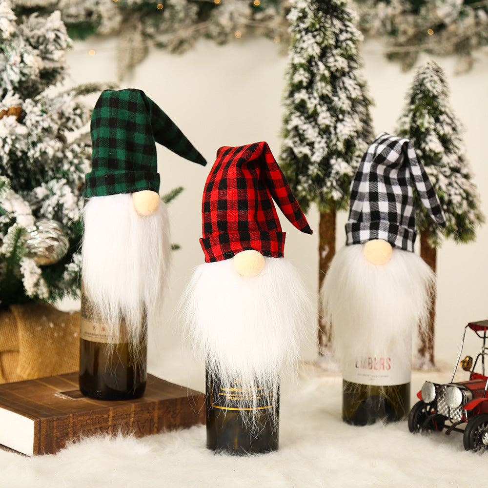 Plaid Hat Plush Gnome Wine Bottle Cover