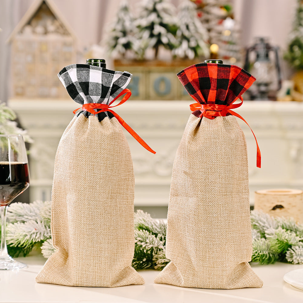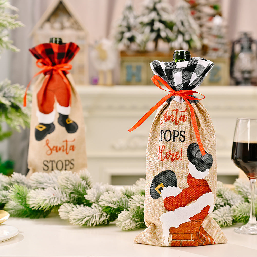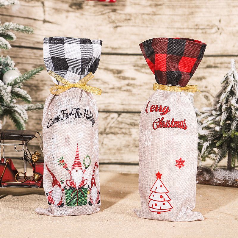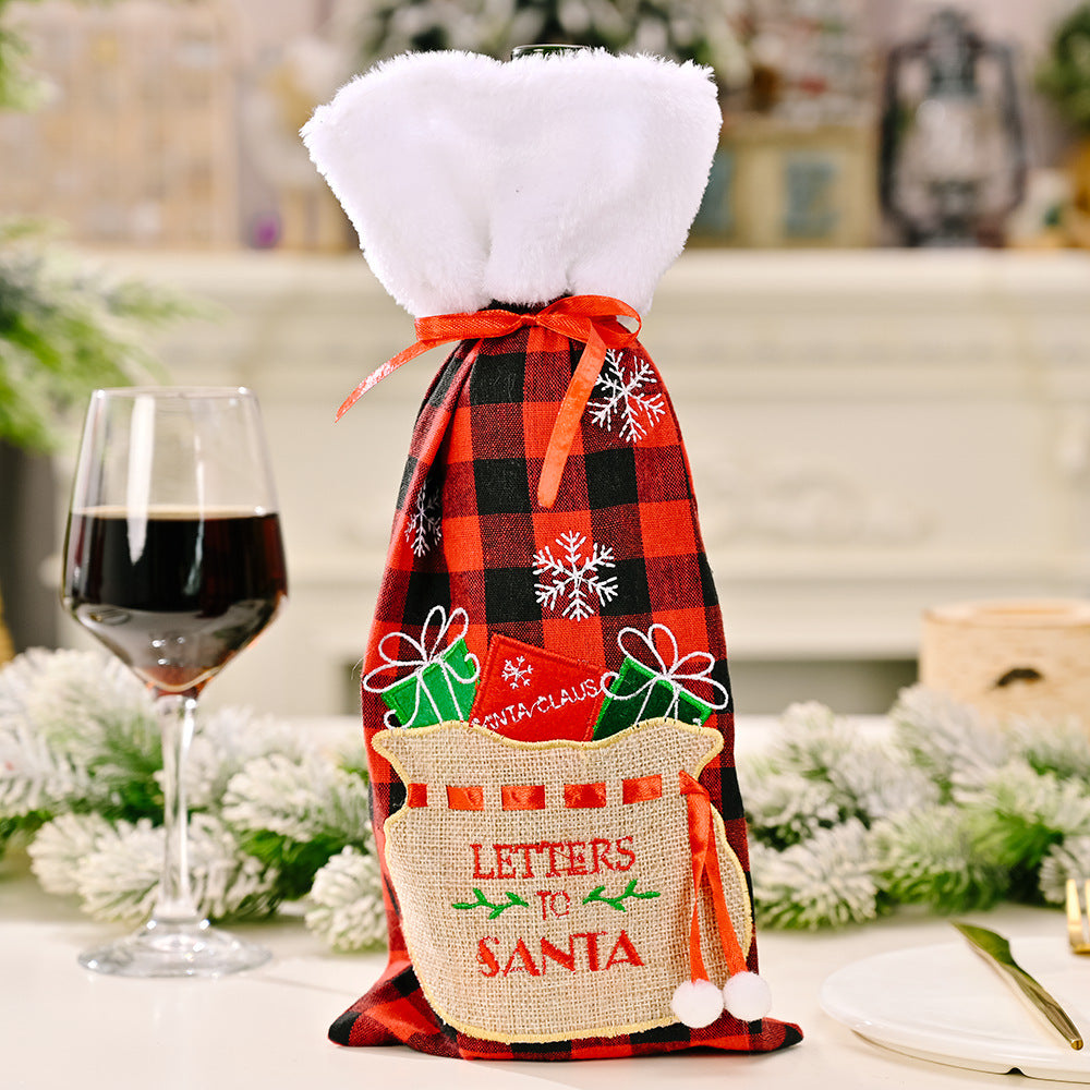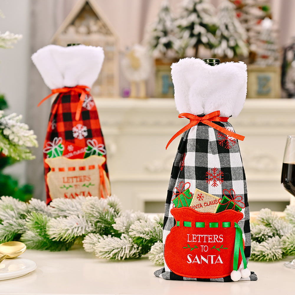 Plaid Hat Plush Gnome Wine Bottle Cover
