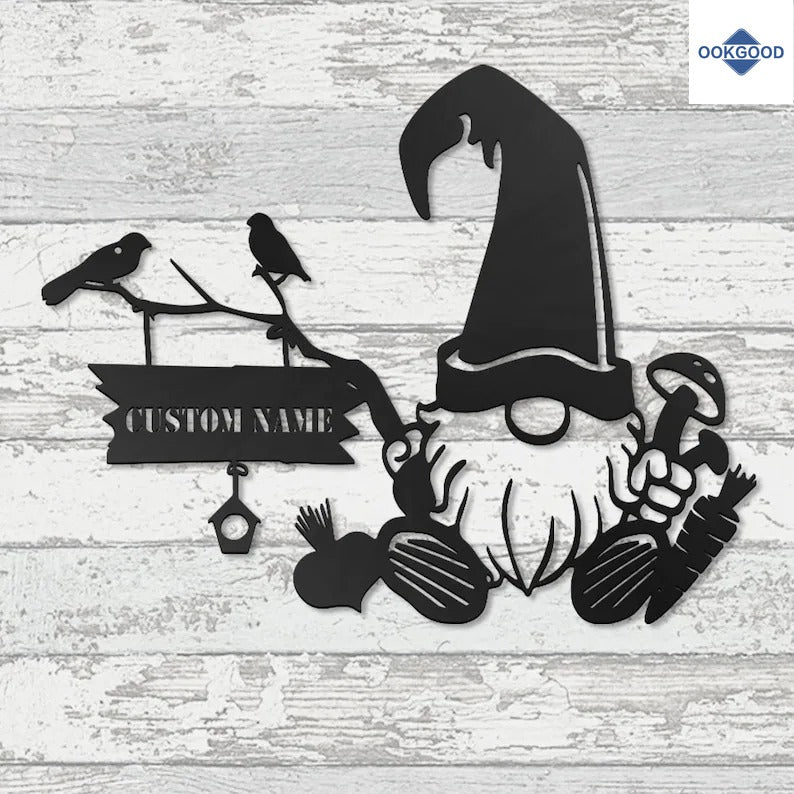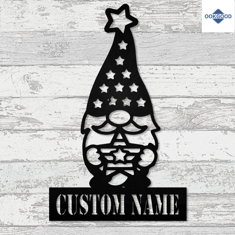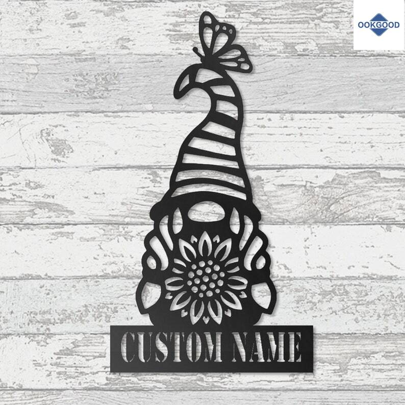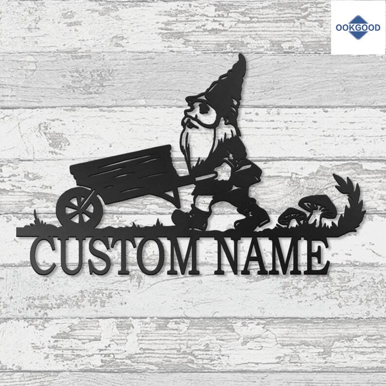 Personalized Custom Garden Gnome Elf Metal Art Sign