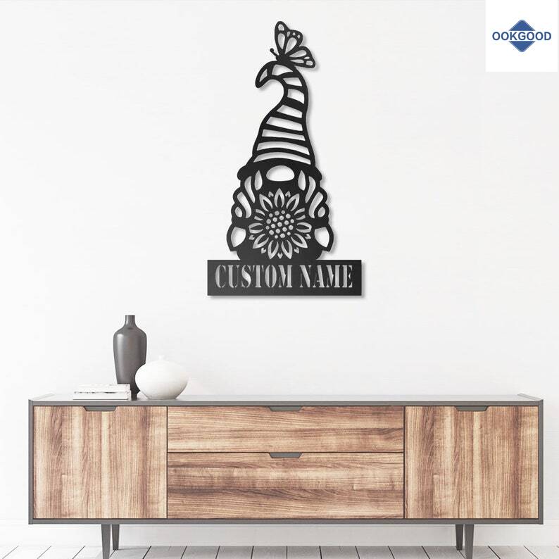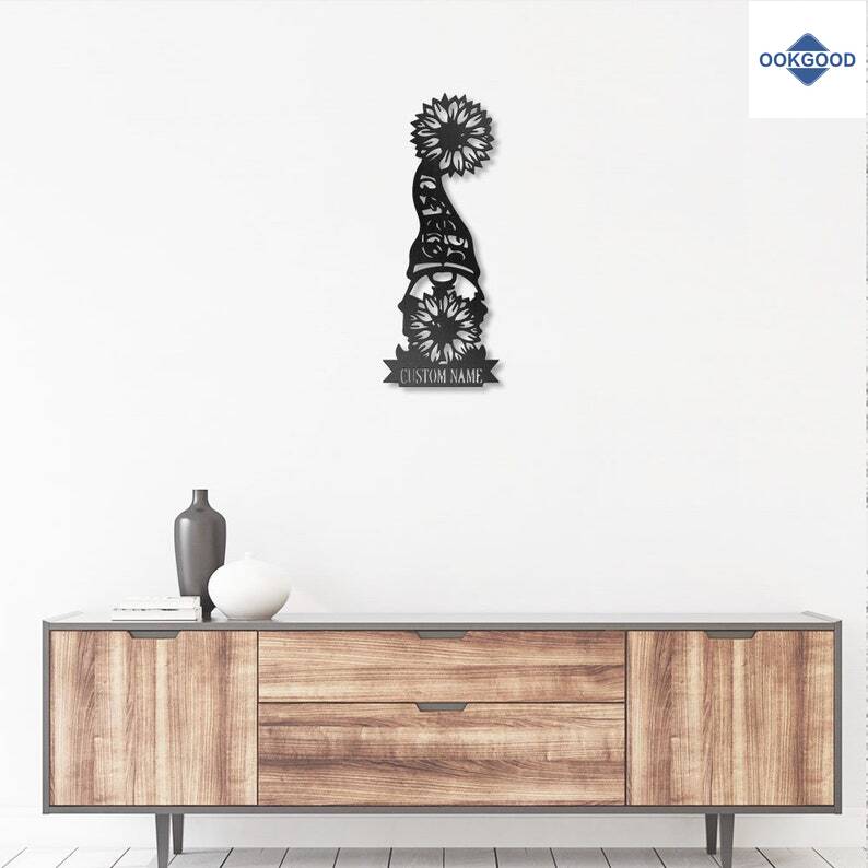 Personalized Custom Sunflower Gnome Metal Wall Decor