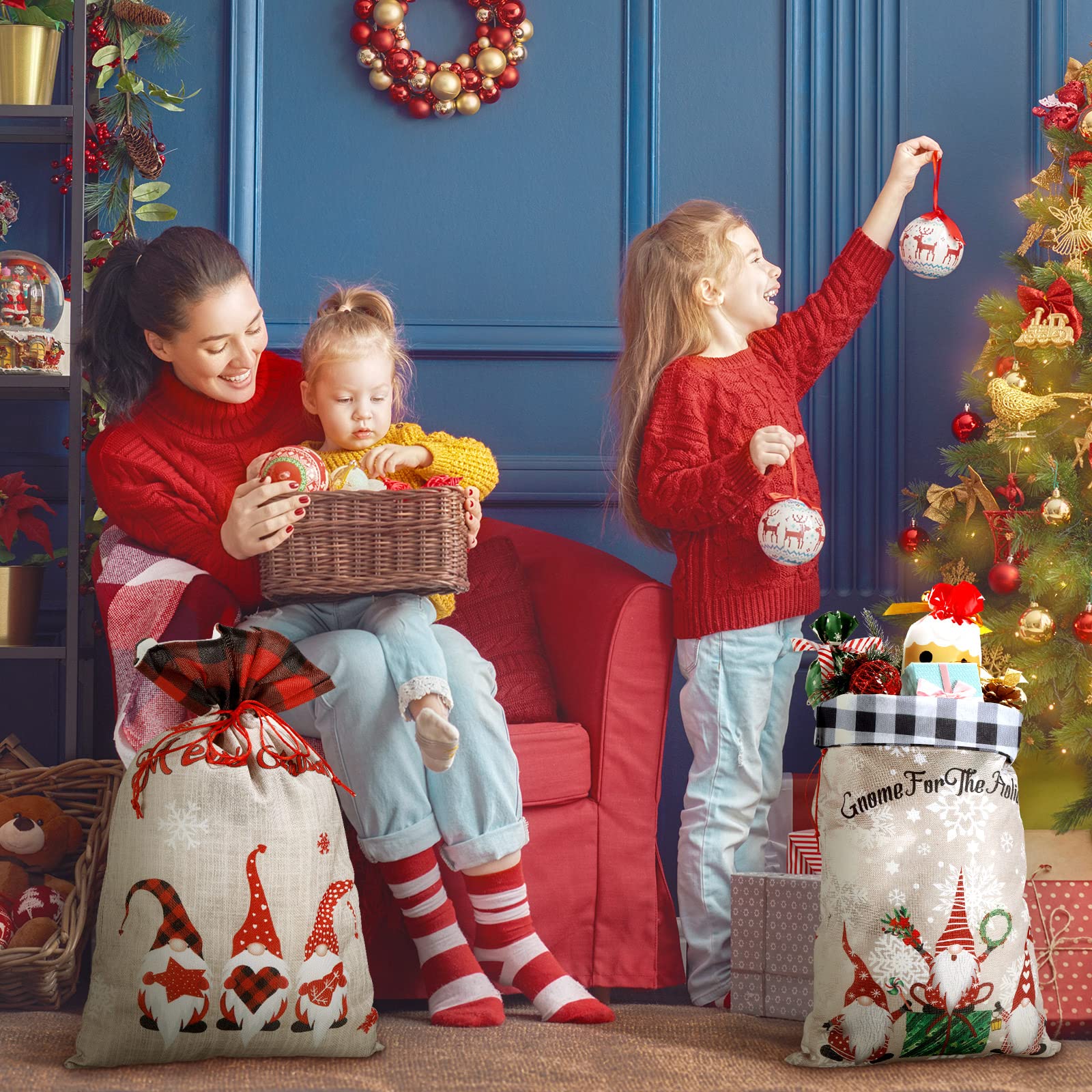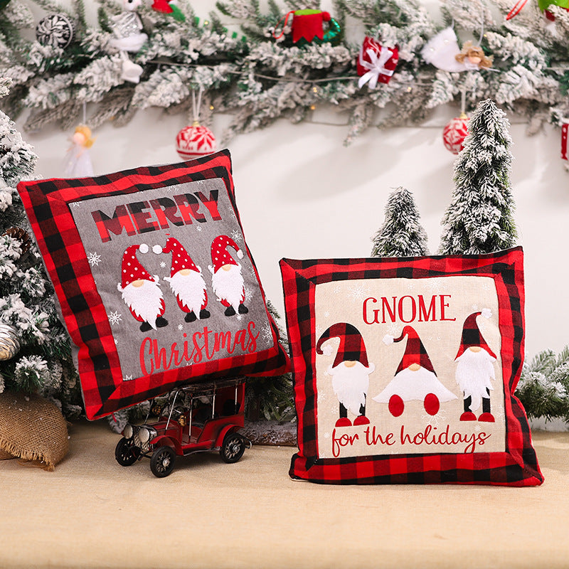 Plaid Christmas Stocking With Long-legged Plush Gnome
