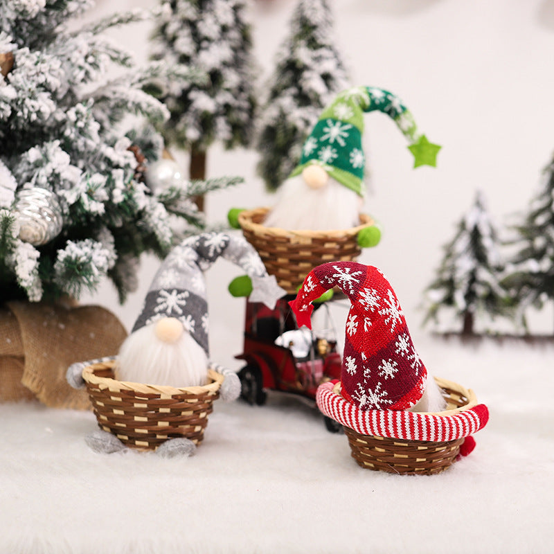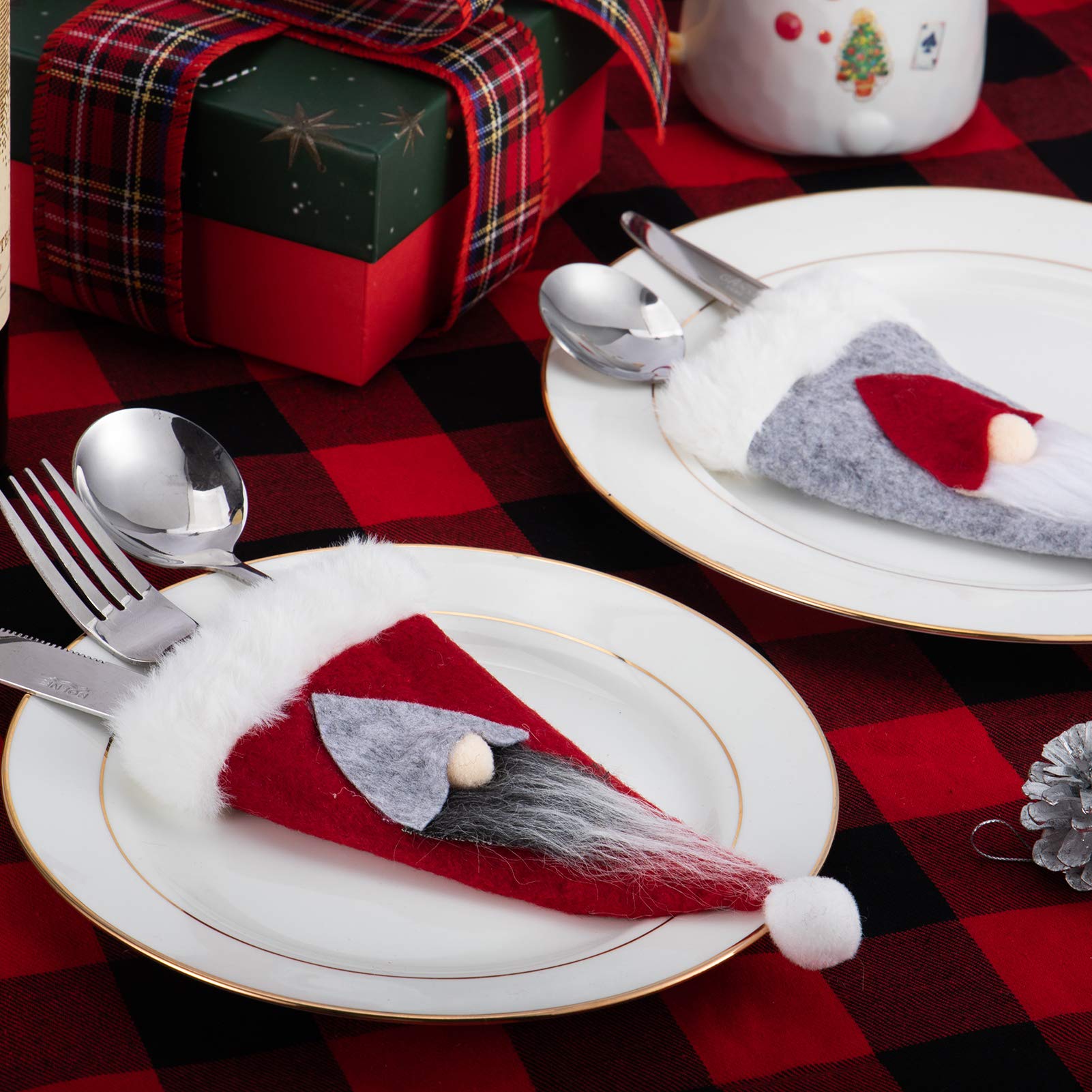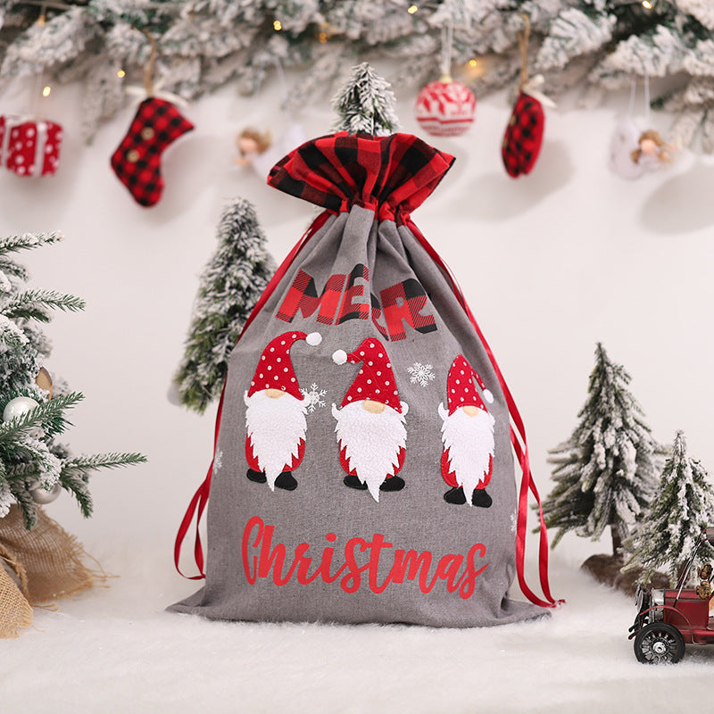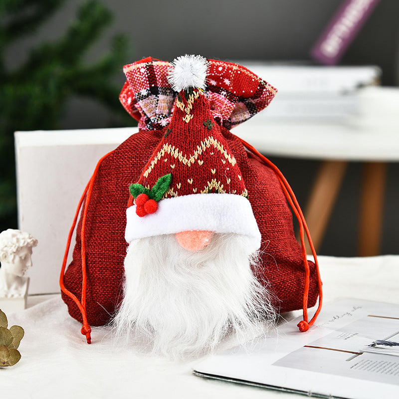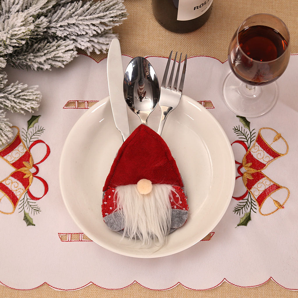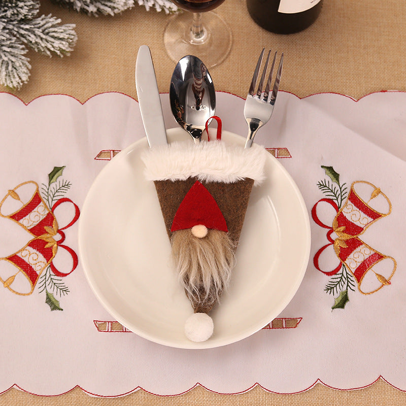 Christmas Hat Shaped Cutlery Storage Bag With Plush Gnome
