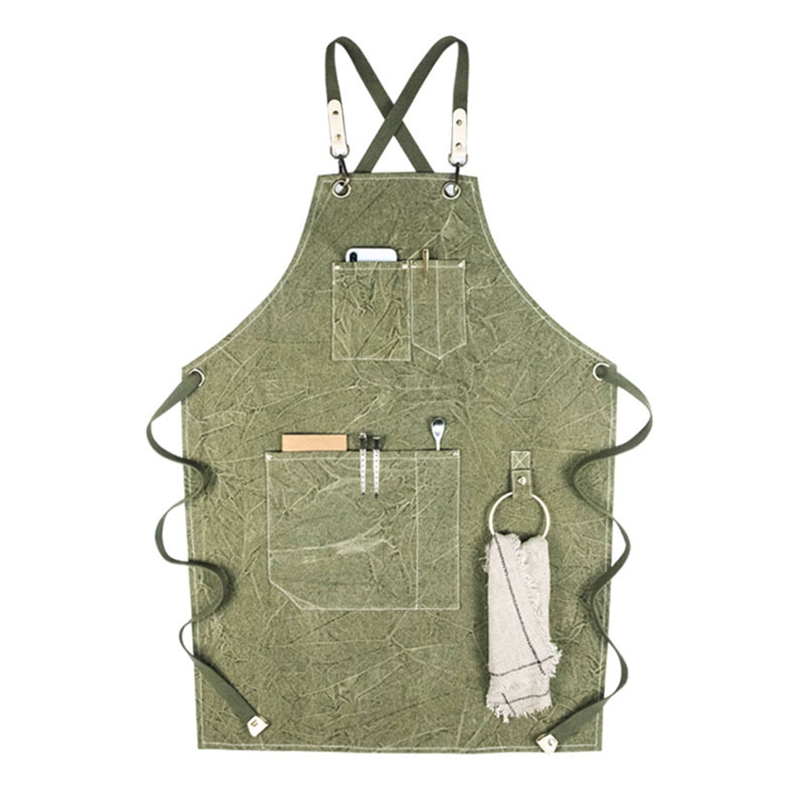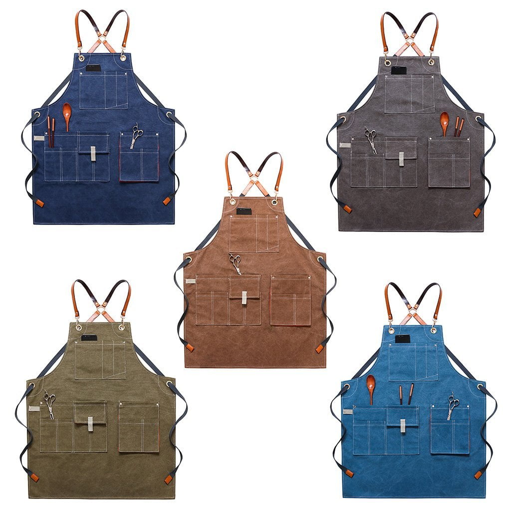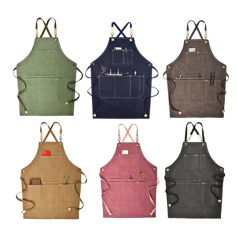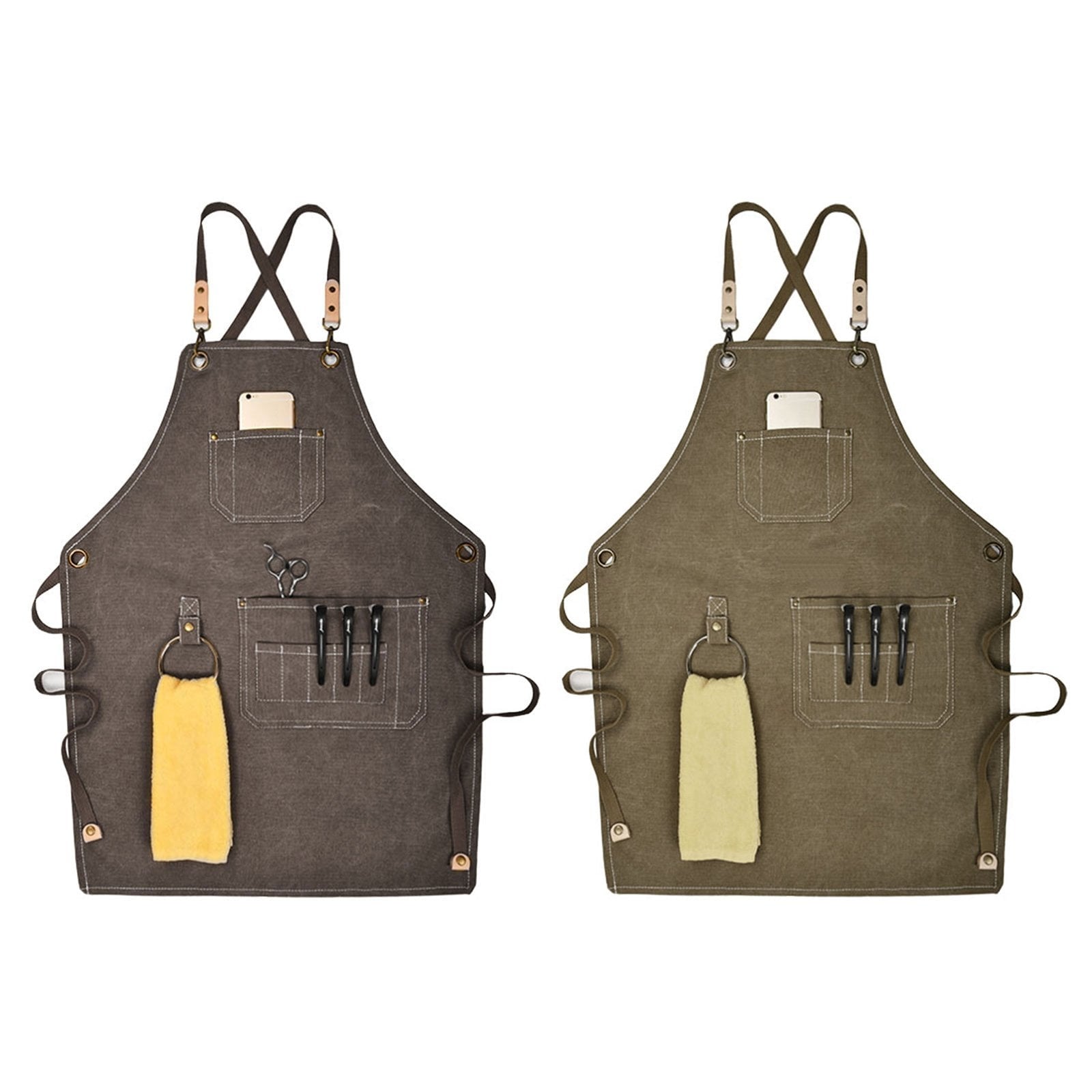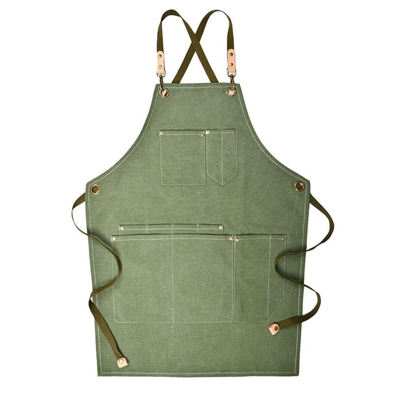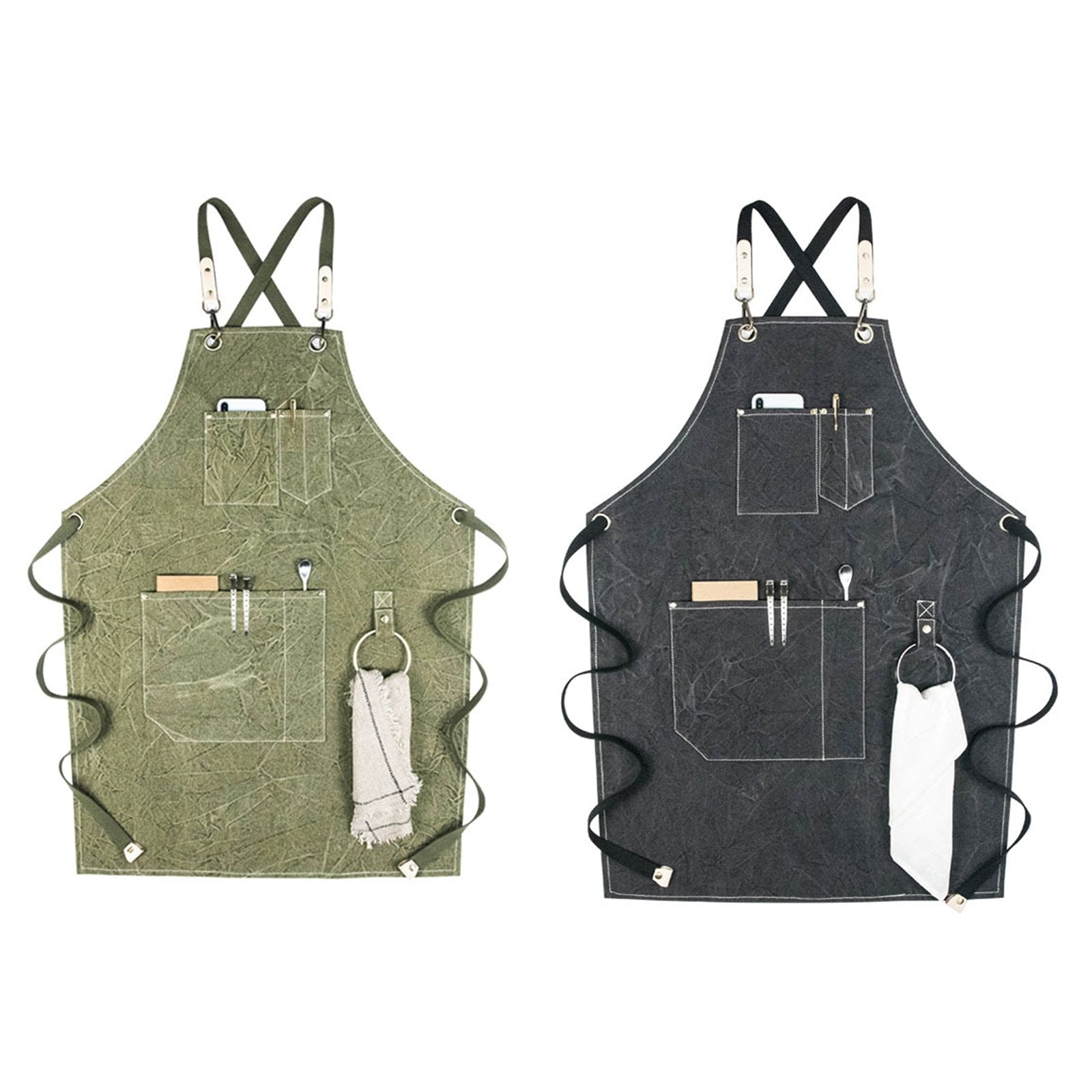 Canvas Work Apron With Pockets Thicken Cross-Back Straps