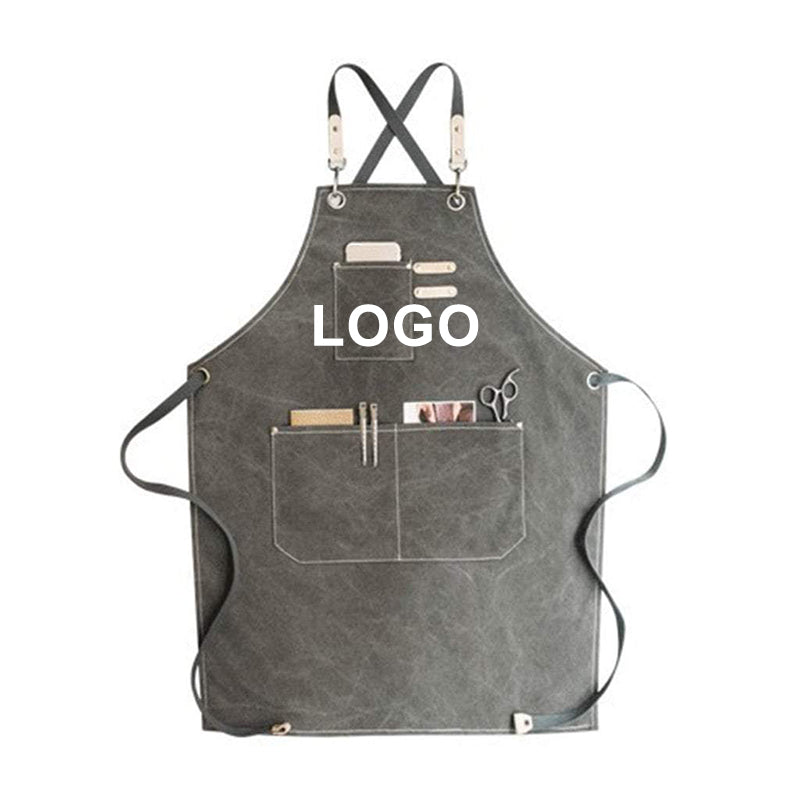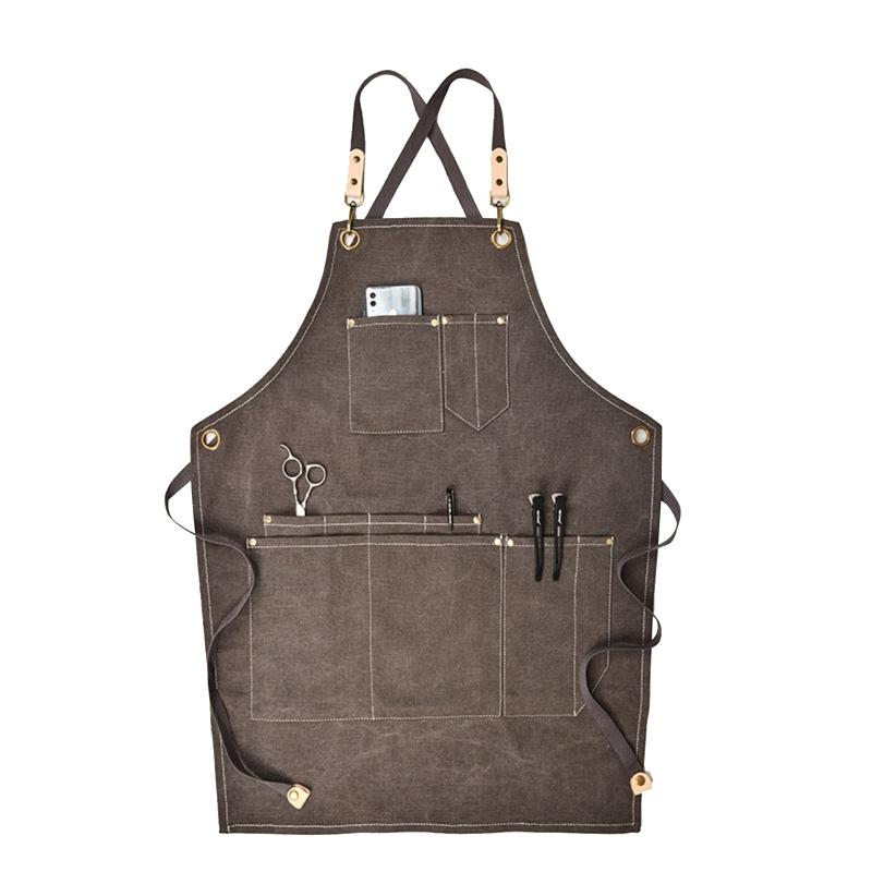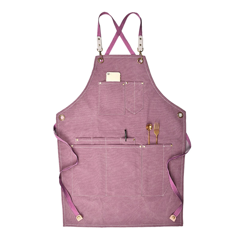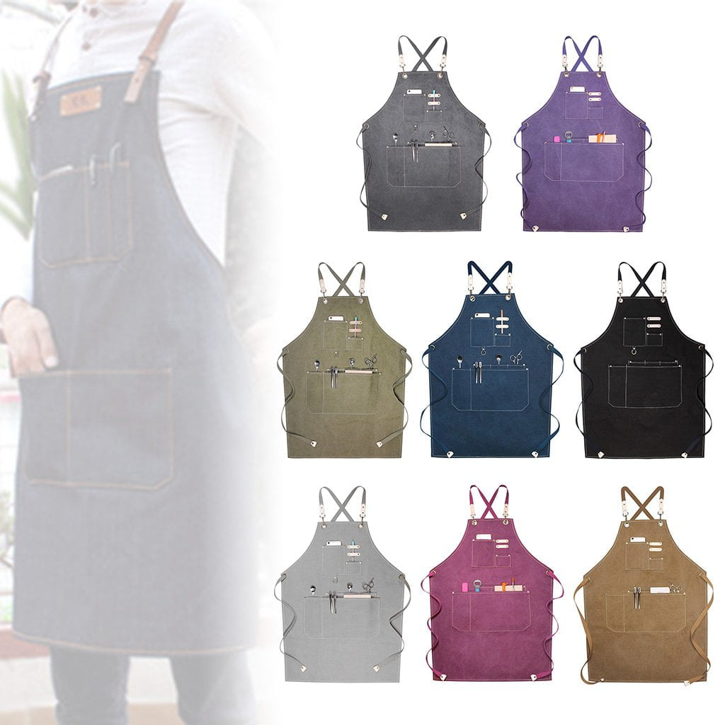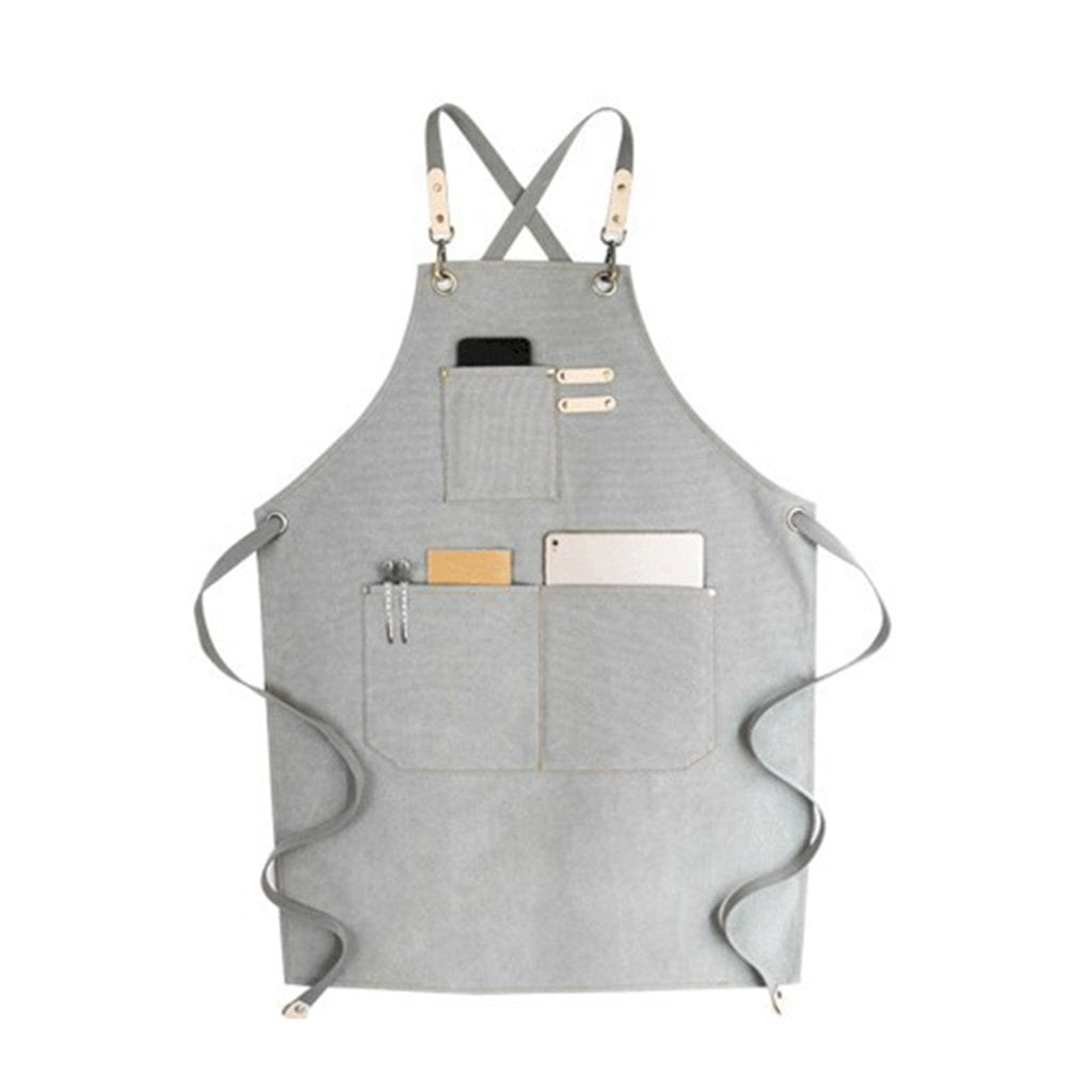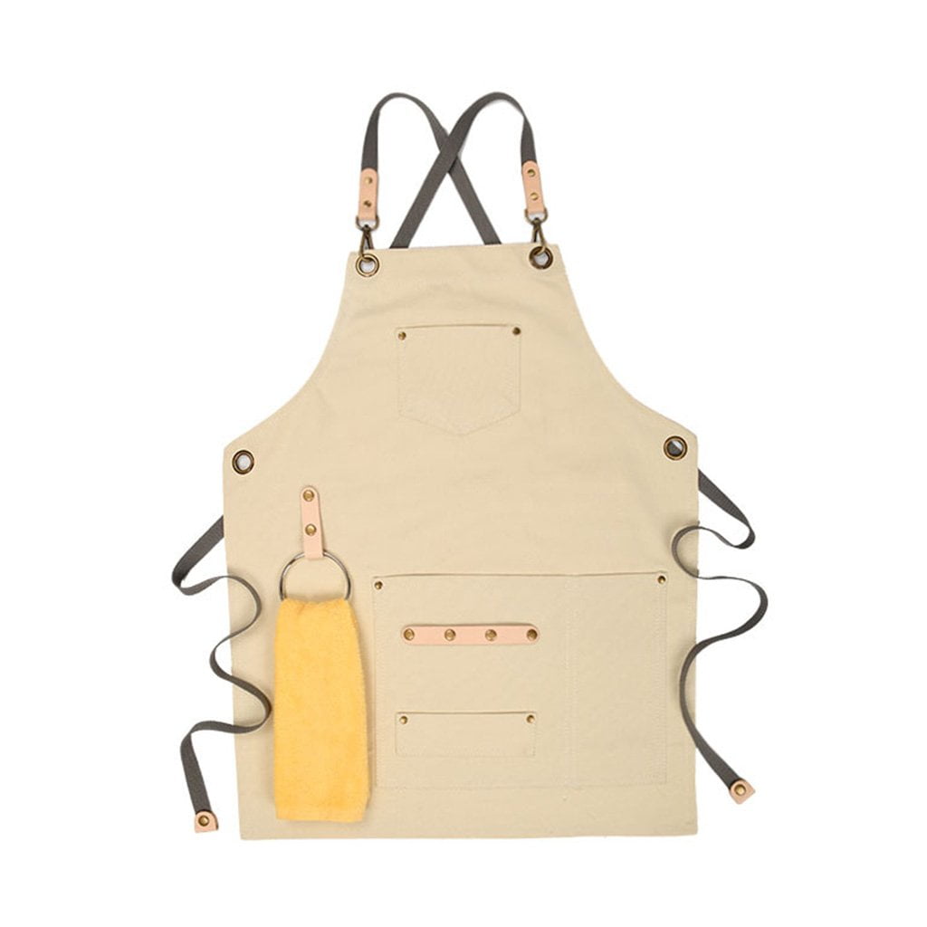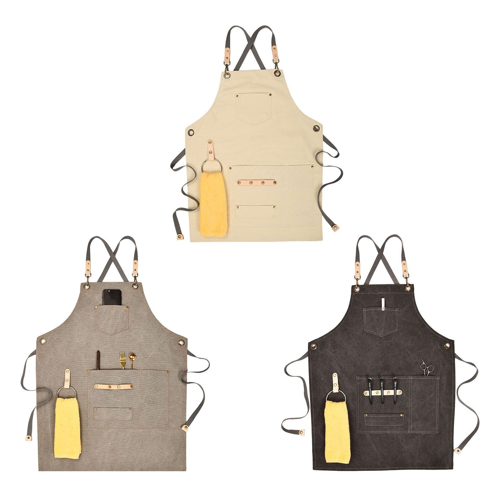 Canvas Work Apron With Pockets Thicken Cross-Back Straps
