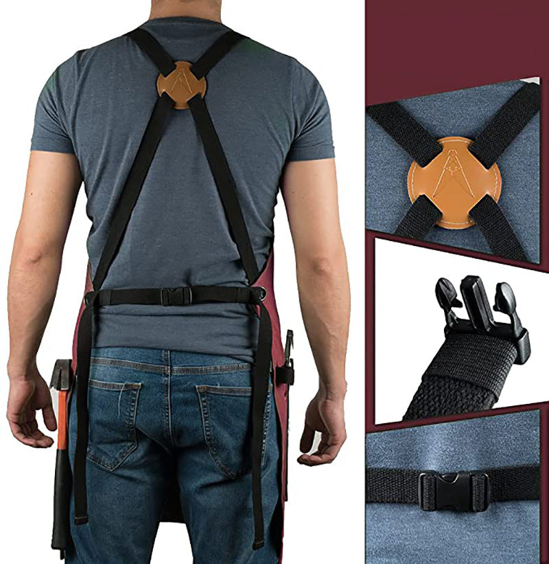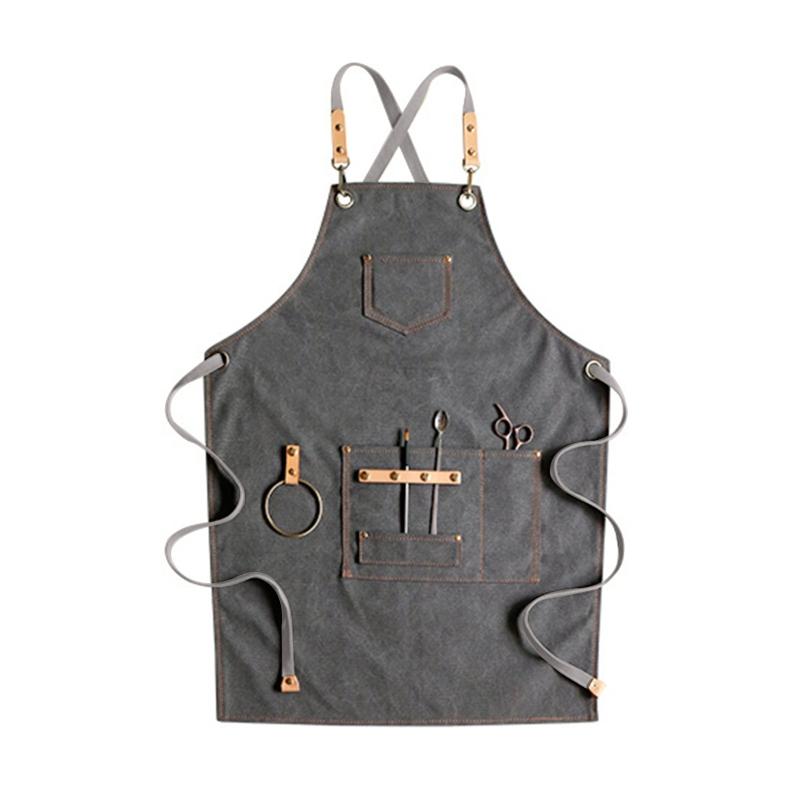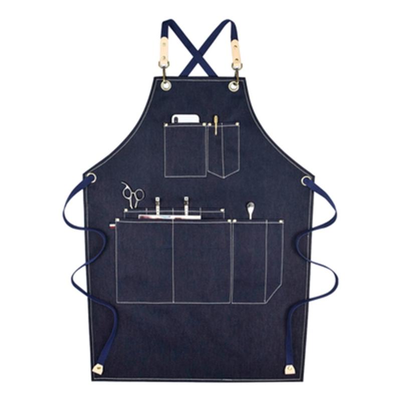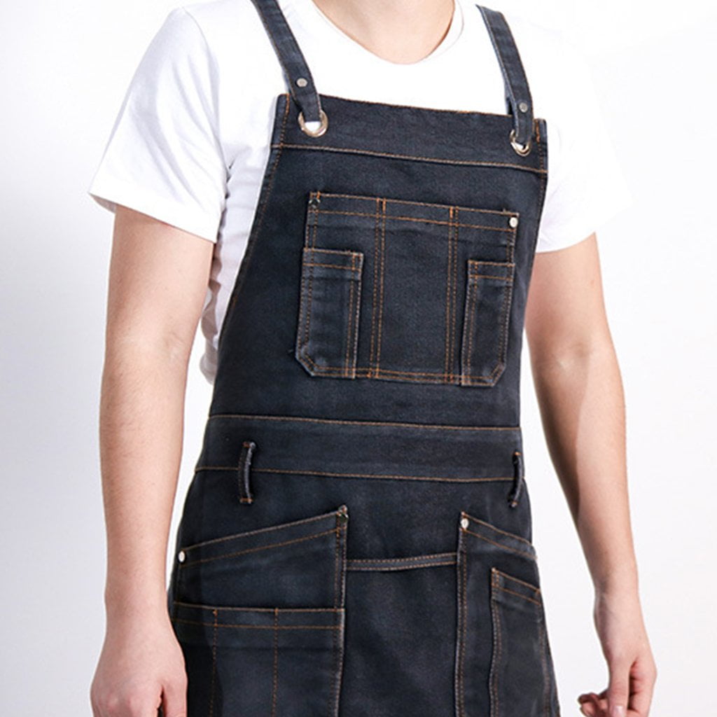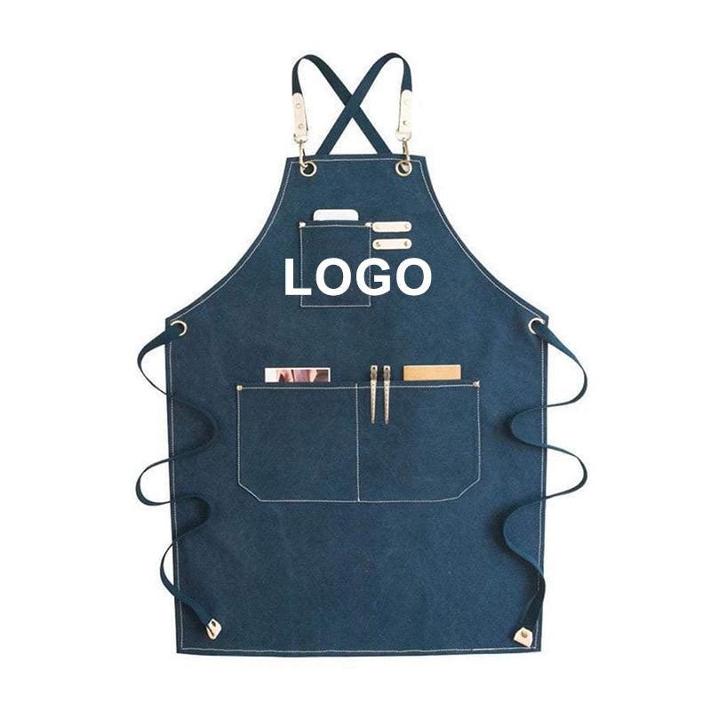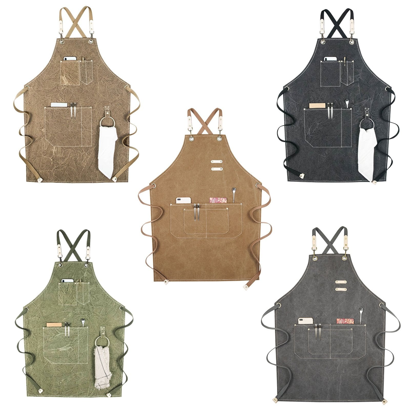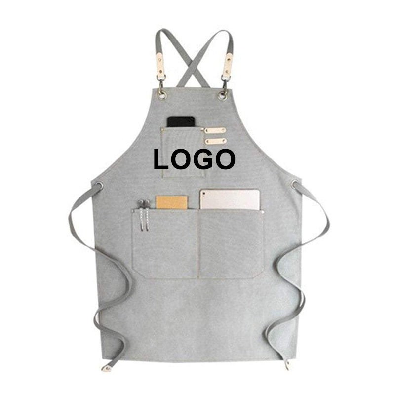 Canvas Work Apron With Pockets Thicken Cross-Back Straps