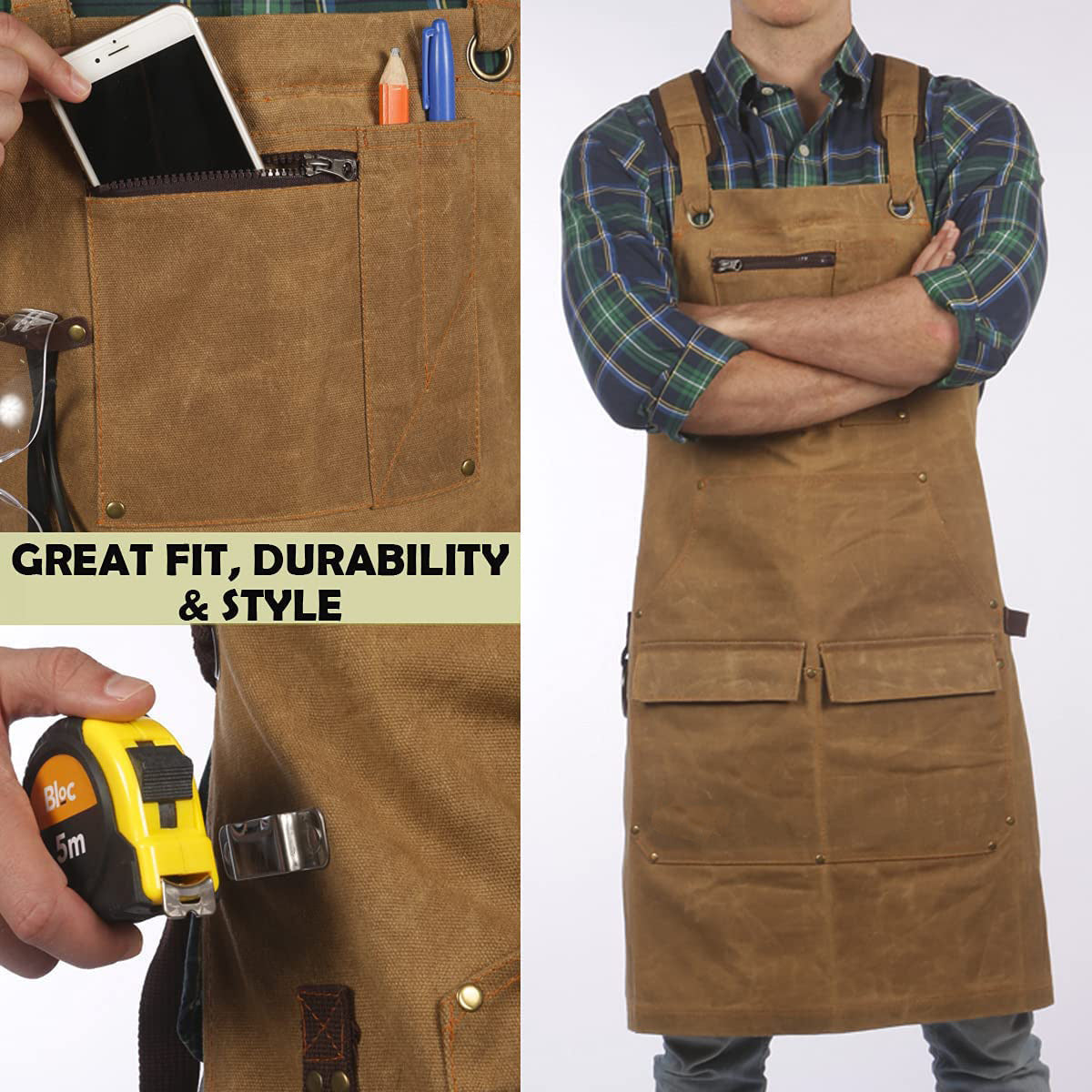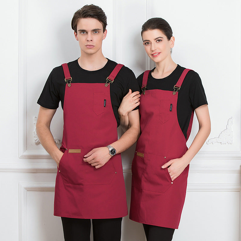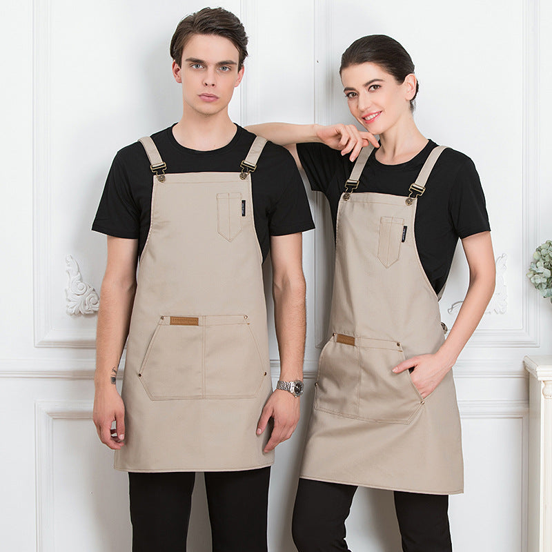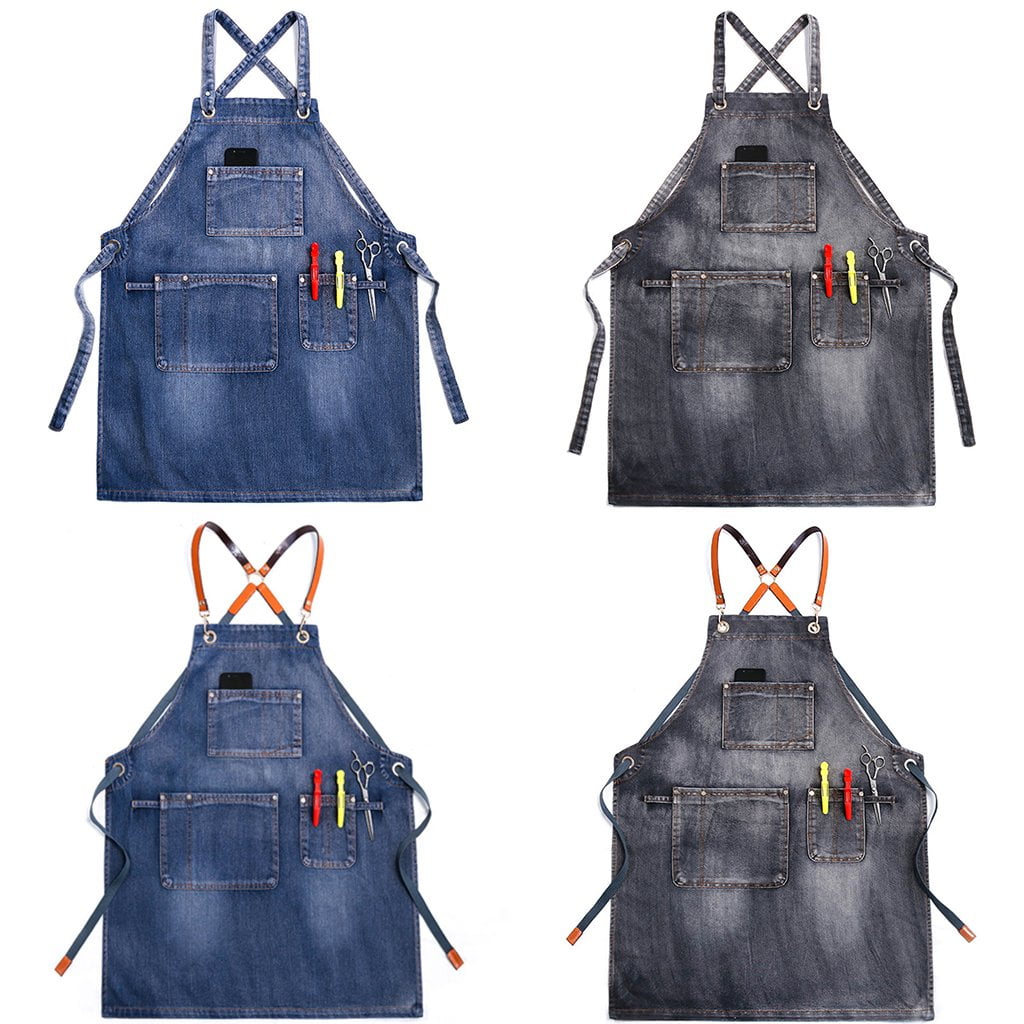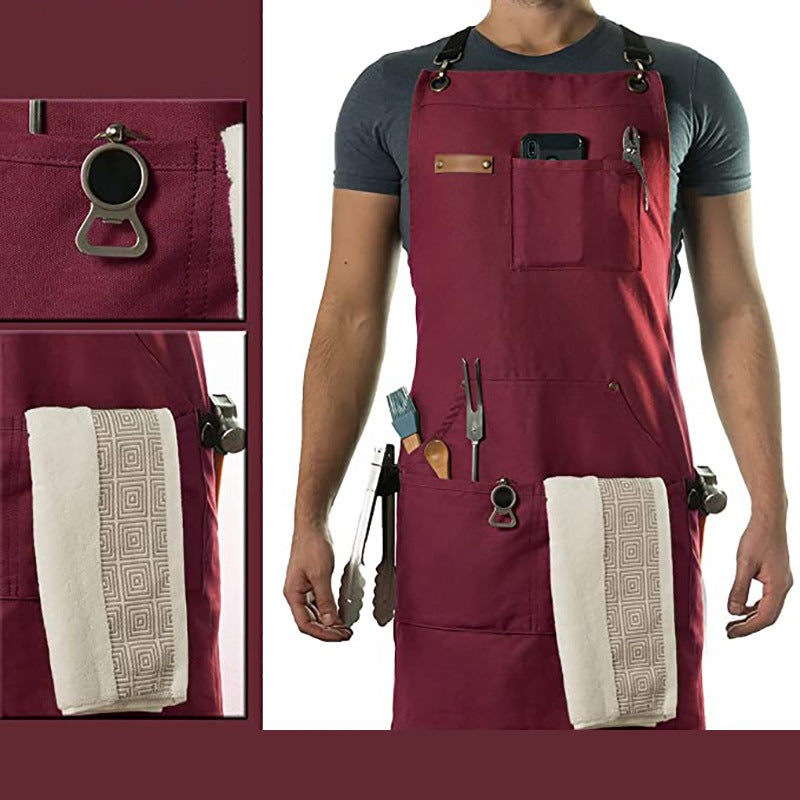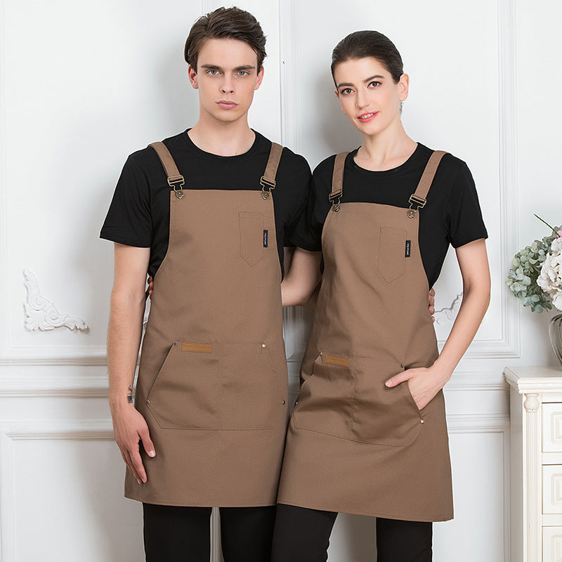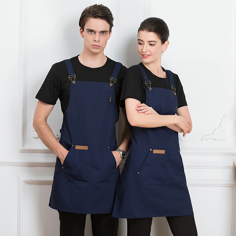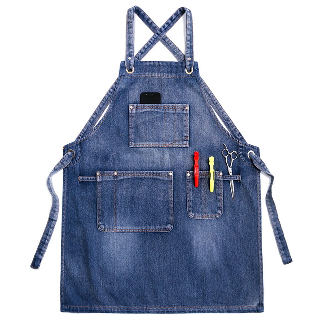 Canvas Work Apron With Pockets Thicken Cross-Back Straps