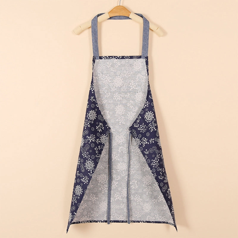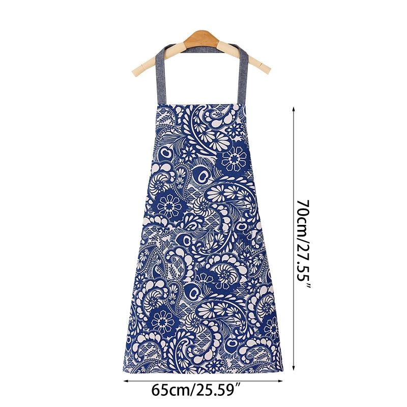 Ceramic Floral Kitchen Apron With Pocket Adjustable Neck Strap Oil Proof Bib