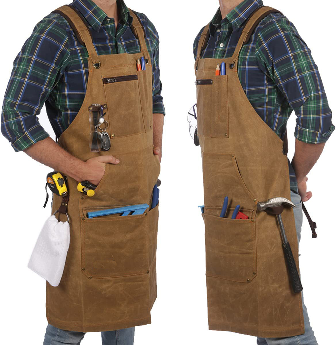 【Practical & Multi-functional】Our Apron has strategically placed pockets so that you have everything you need close to hand instead of constantly search for them. Front pockets are deep and have ample space with flaps to keep out dust and can be tucked into pockets. The "cell phone pocket" is large enough with zip to prevent it from falling out when bending over.