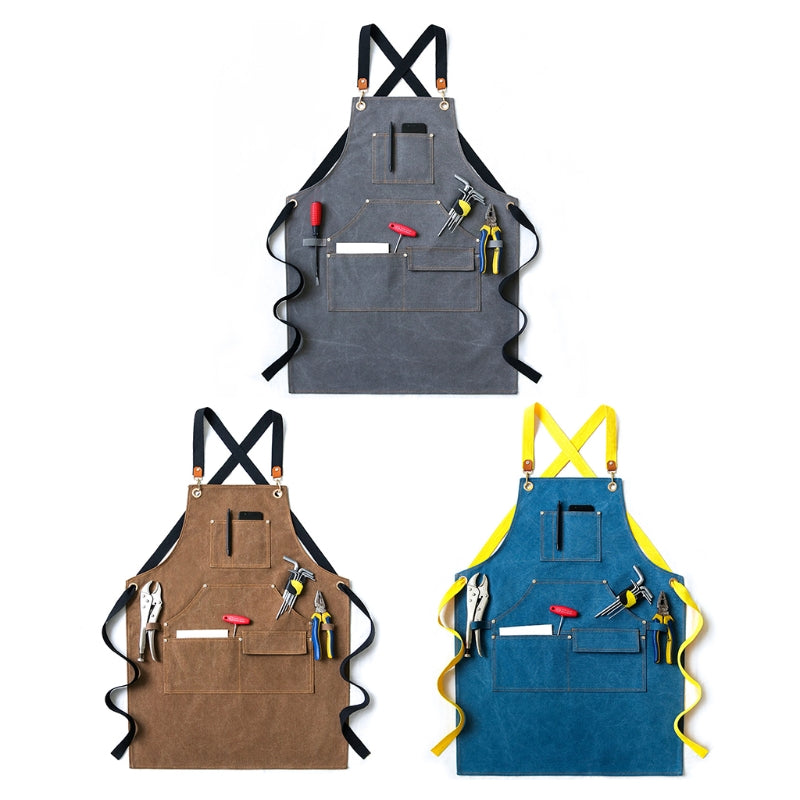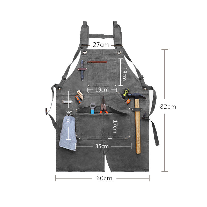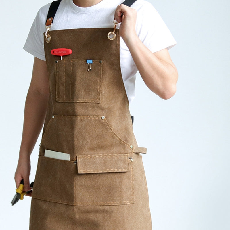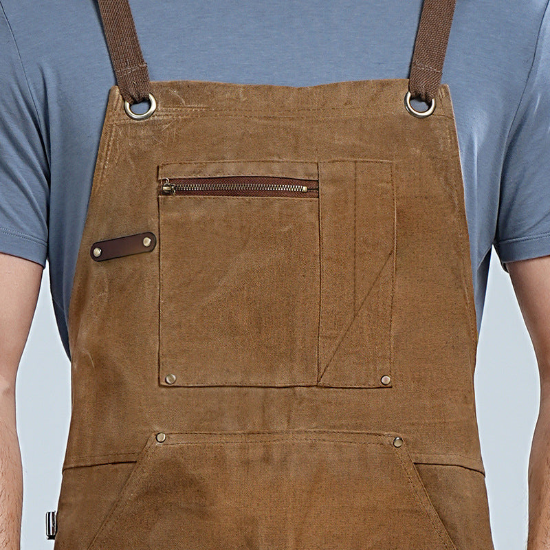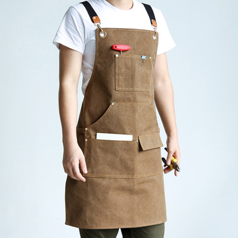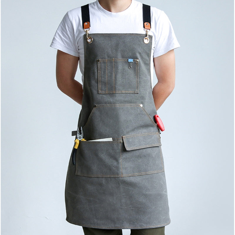Waterproof Adjustable Cross Back Canvas Apron With Pockets