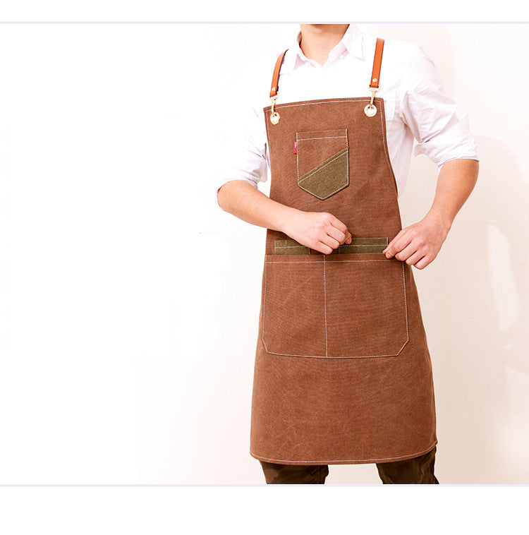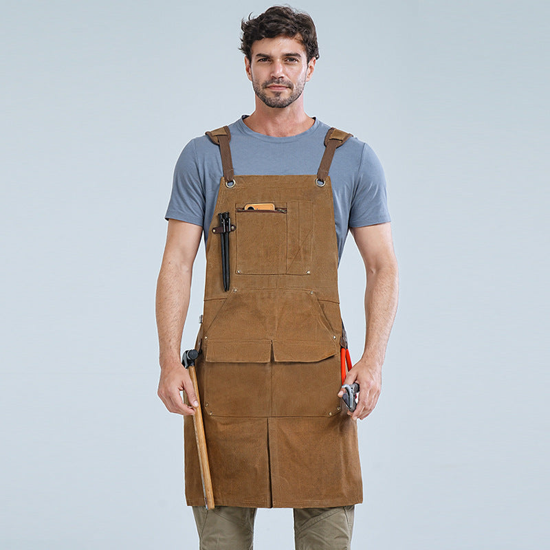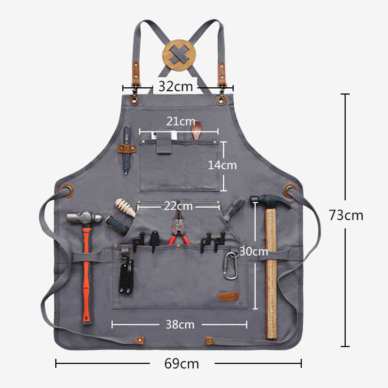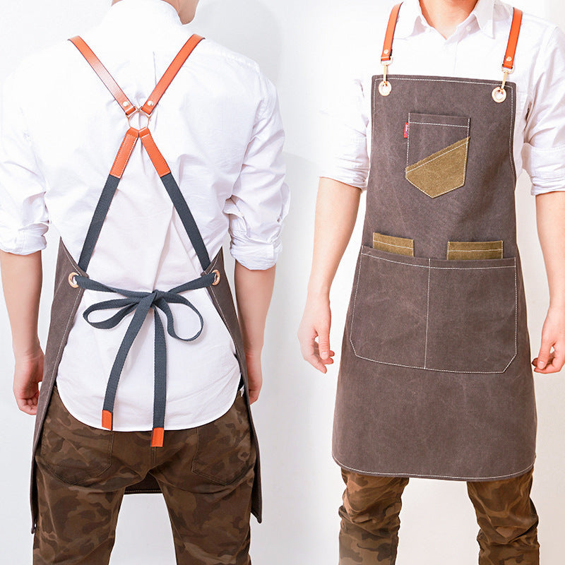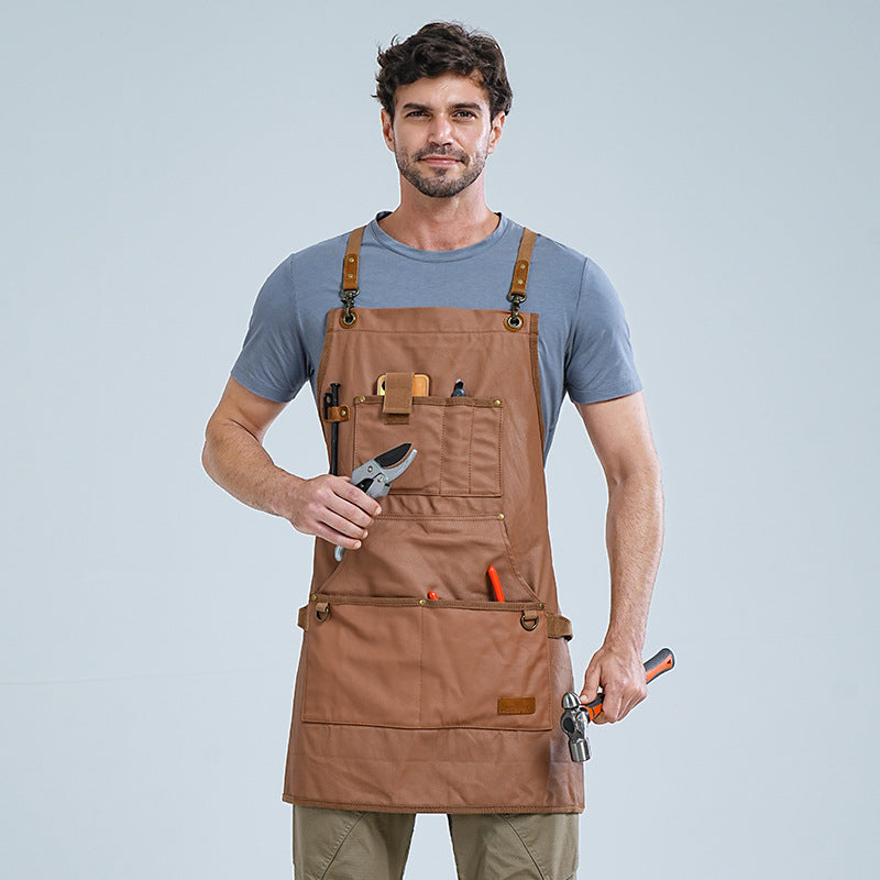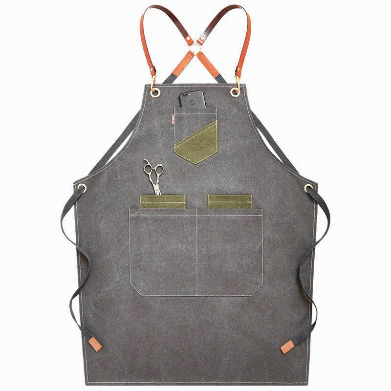 Waterproof Adjustable Cross Back Canvas Apron With Pockets