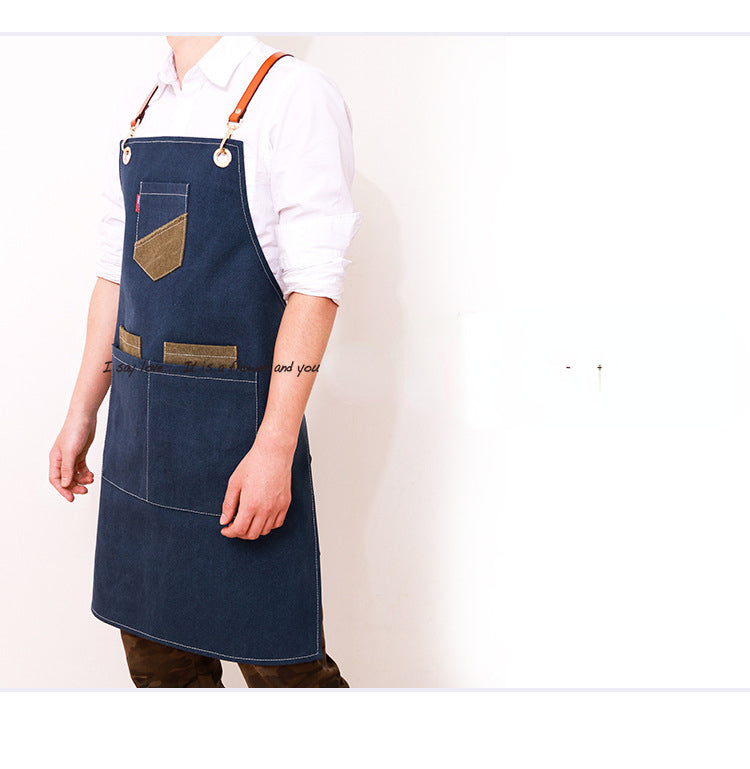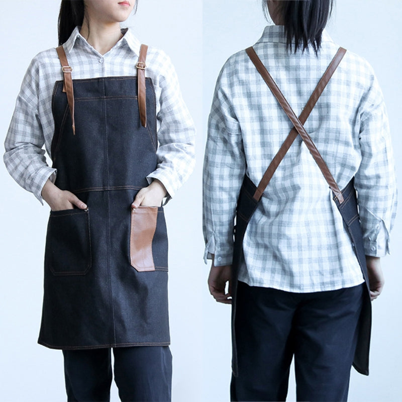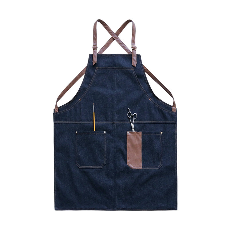 Canvas Denim Apron Cross Back Adjustable Chef Apron Multi-pocket