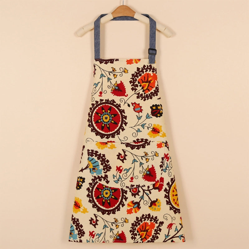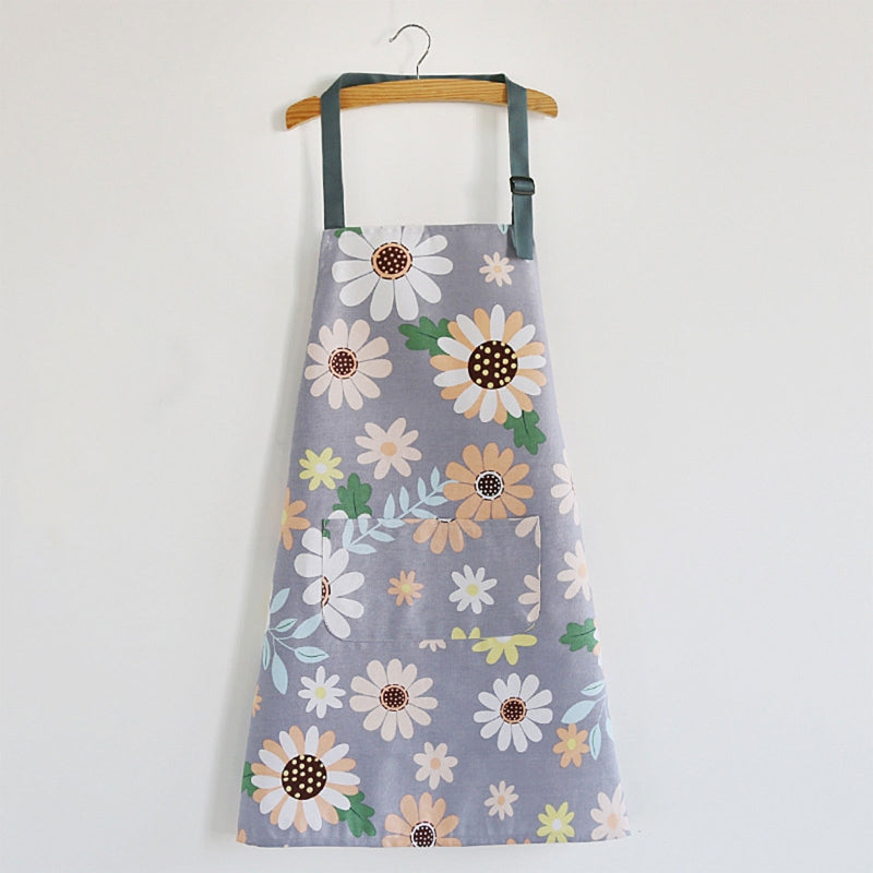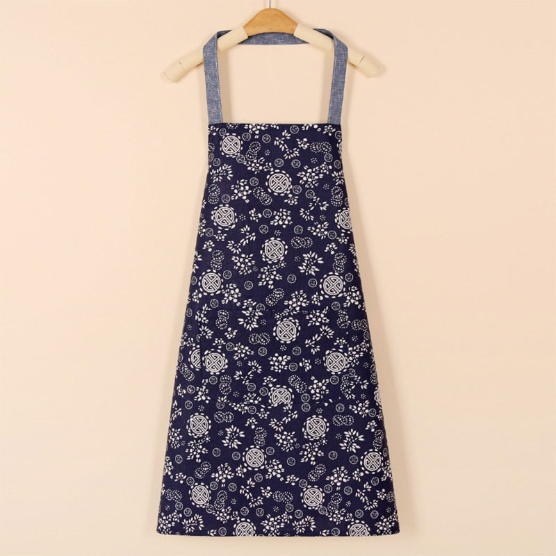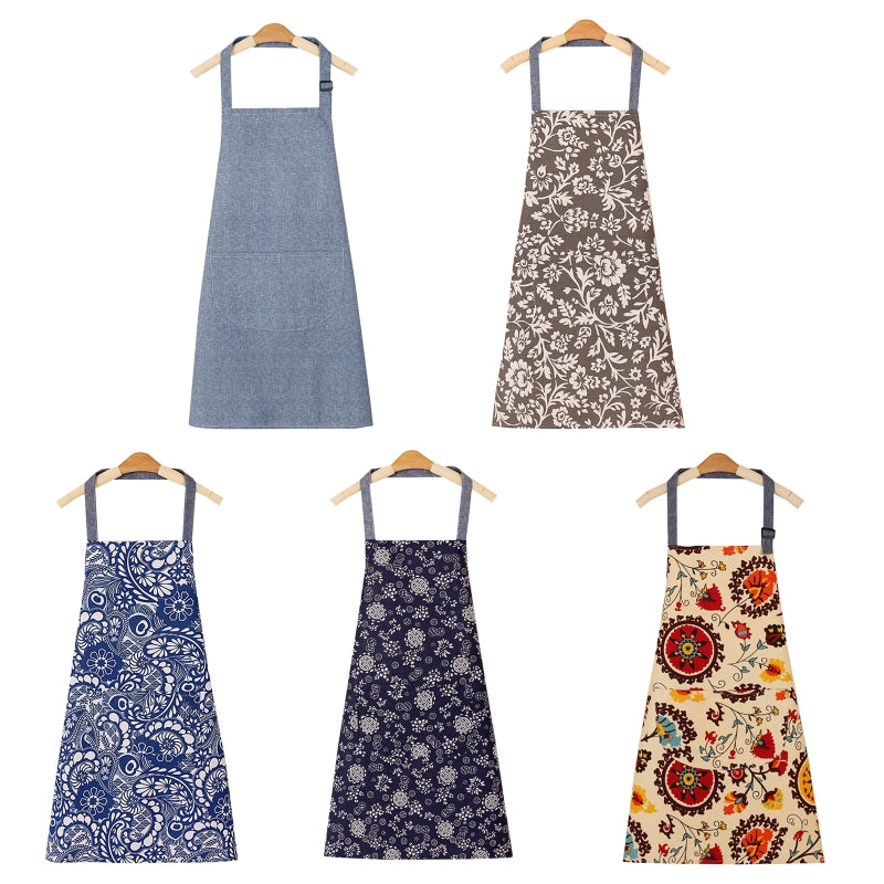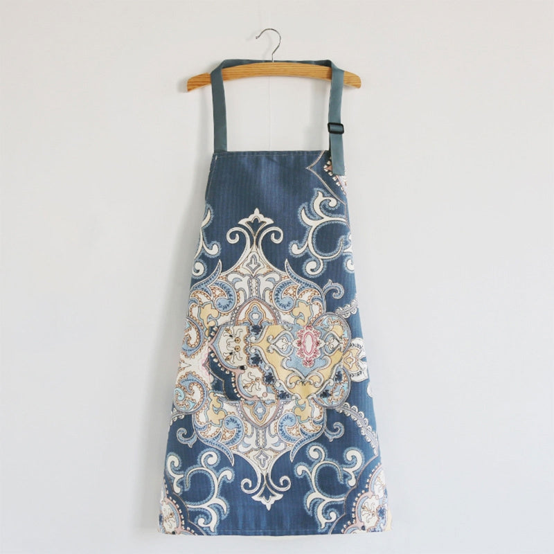 Ceramic Floral Kitchen Apron With Pocket Adjustable Neck Strap Oil Proof Bib